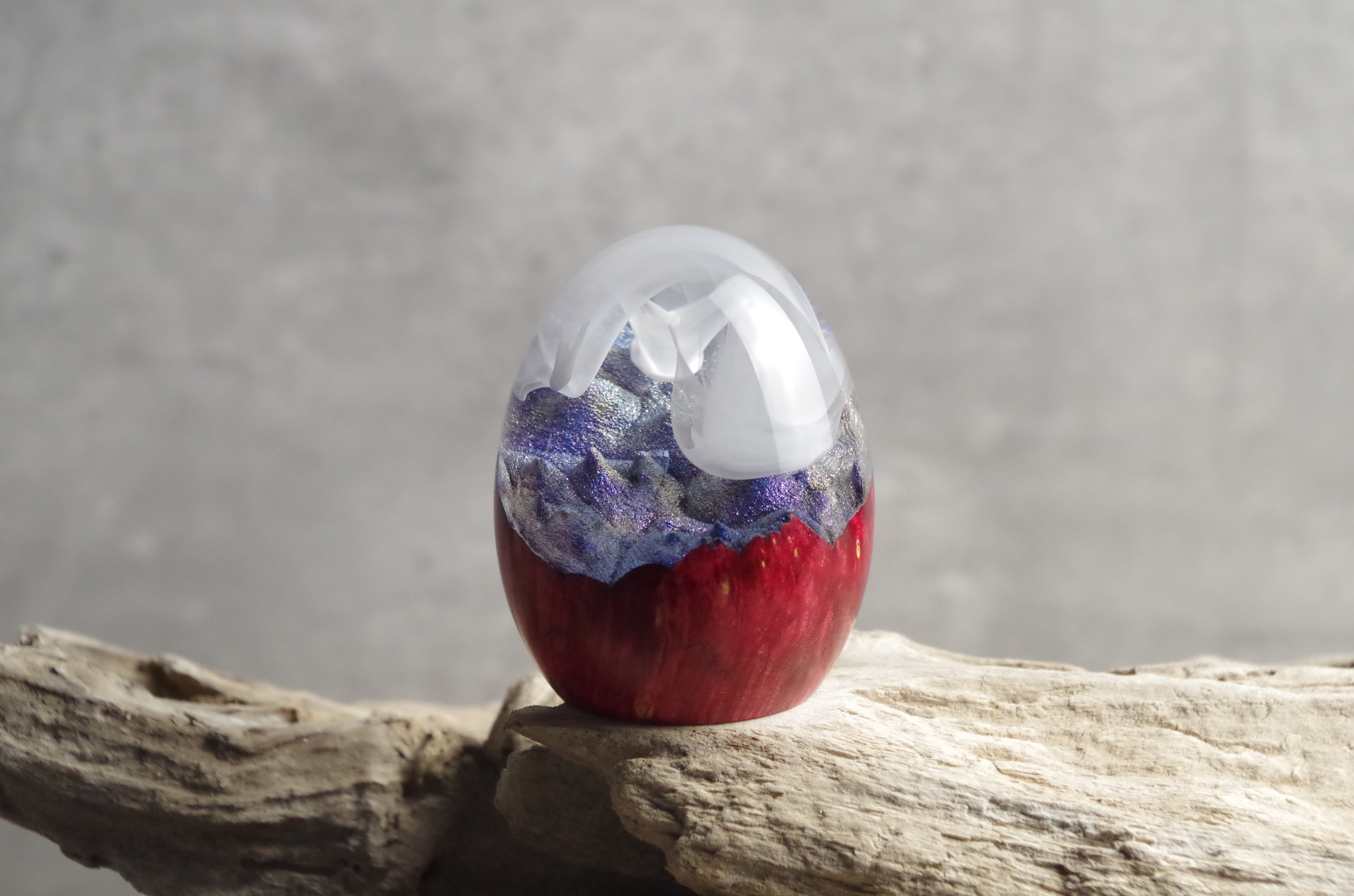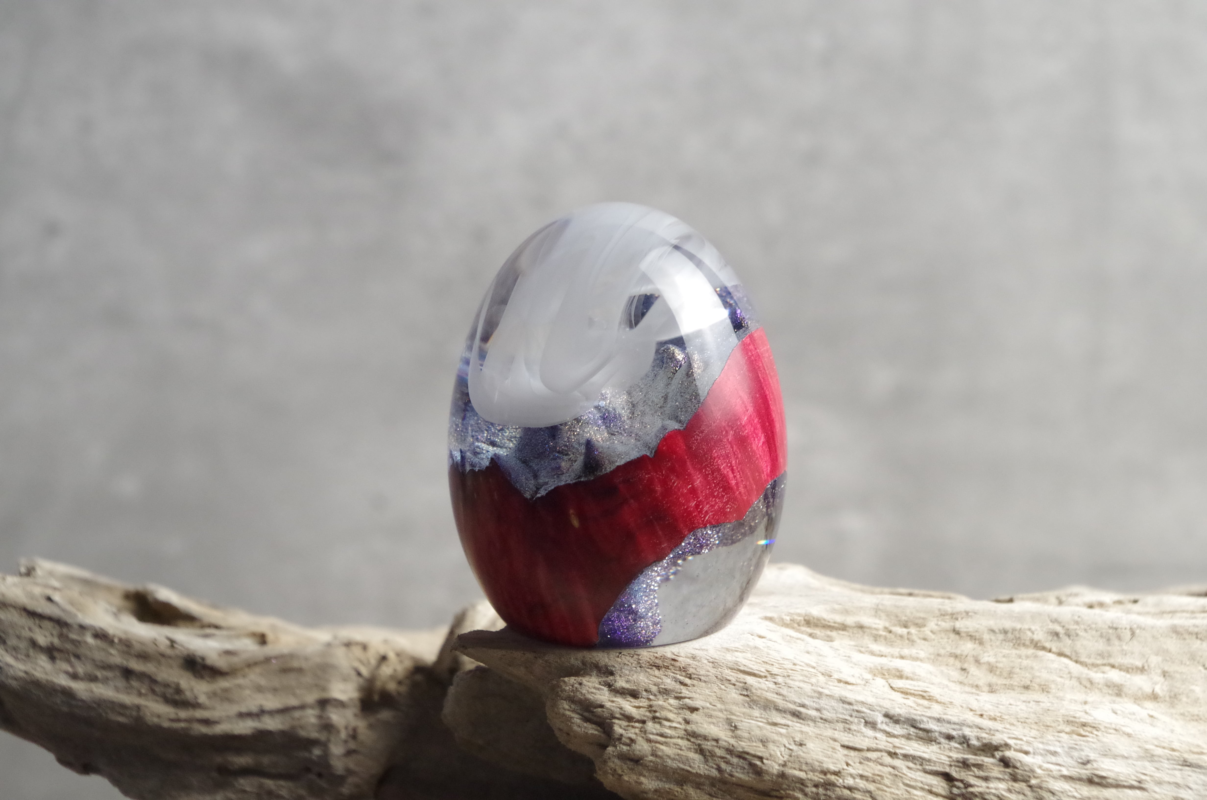 高透明、高強度の2液性のエポキシ樹脂を極限まで磨き上げた卵形オブジェ(ペーパーウェイト)になります。