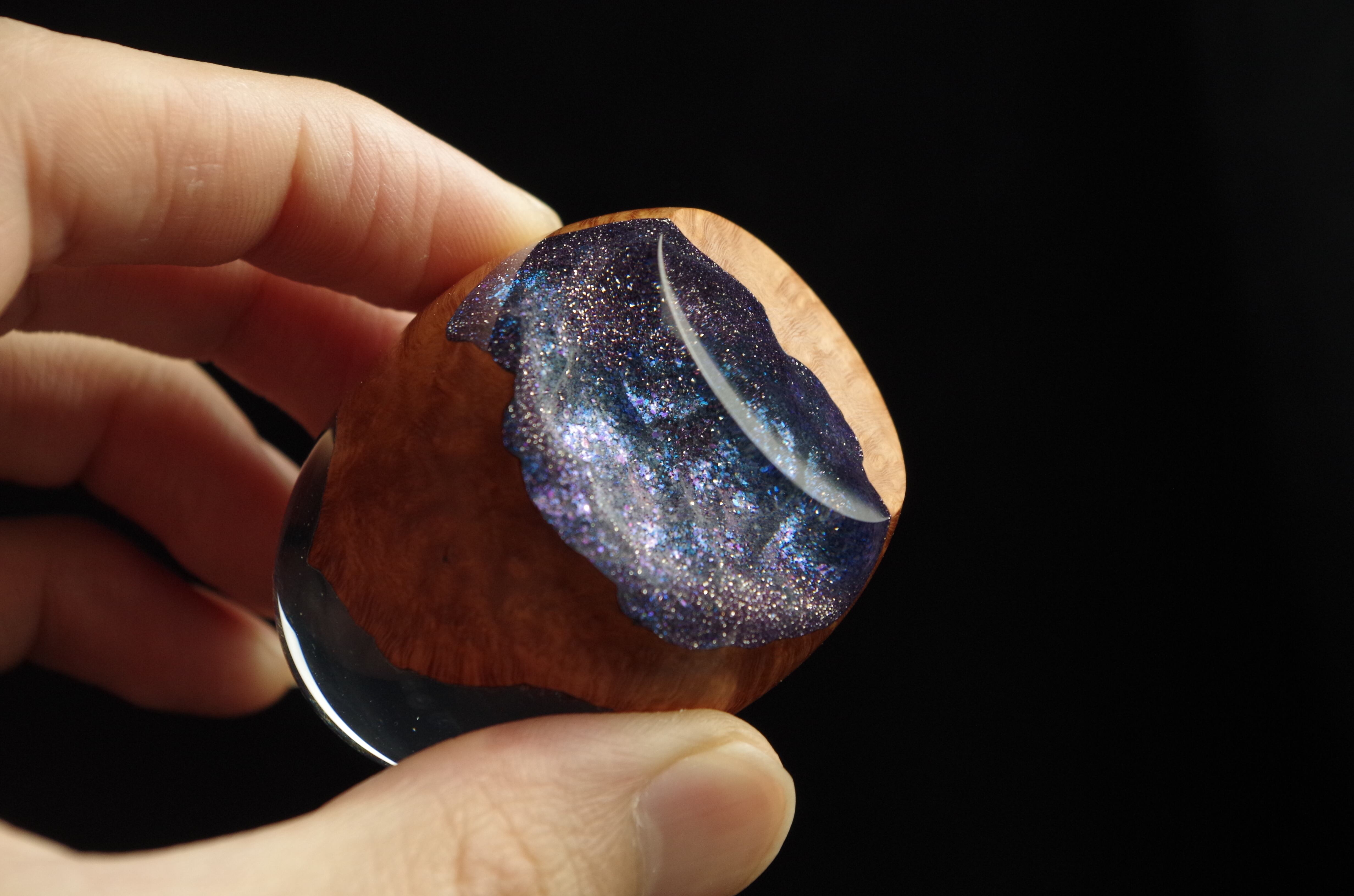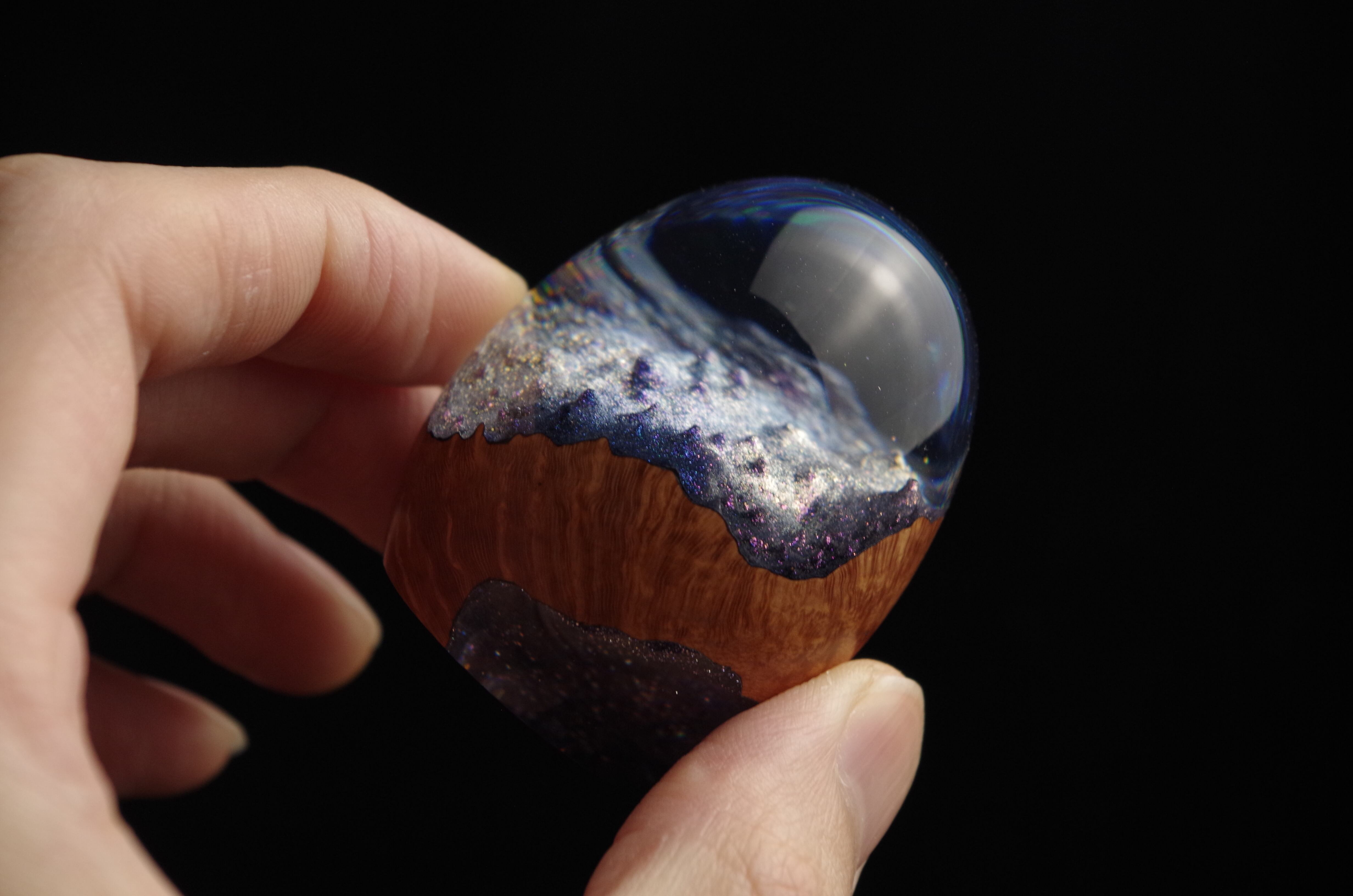 作品内部は景色をイメージし製作しており、より鮮明に魅せるためレジンの透明度と鏡面研磨にはこだわって仕上げました。
