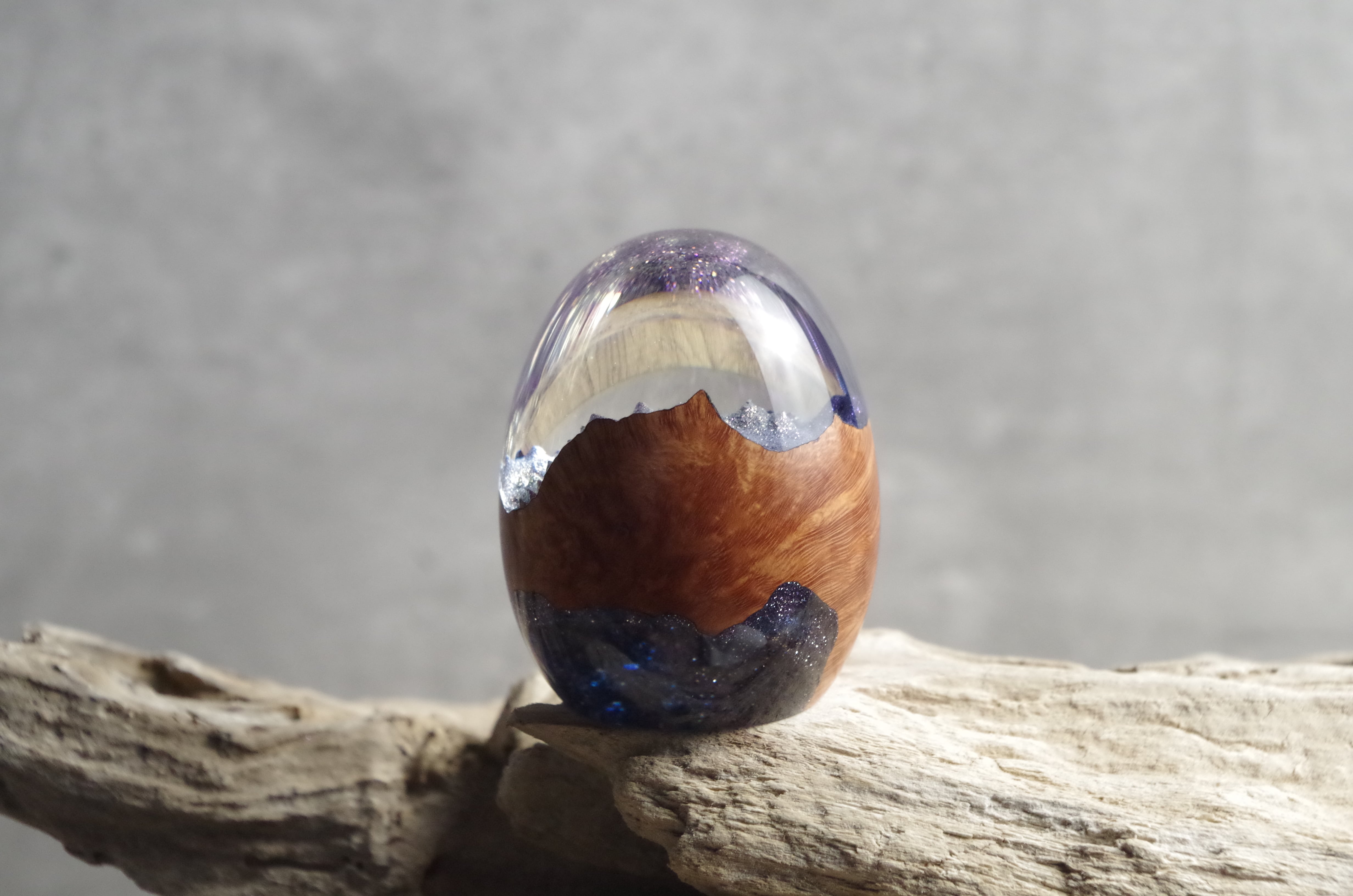 高透明、高強度の2液性のエポキシ樹脂を極限まで磨き上げた卵形オブジェ(ペーパーウェイト)になります。