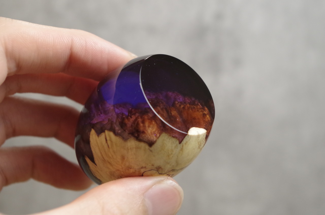 作品内部は景色をイメージし製作しており、より鮮明に魅せるためレジンの透明度と艶にこだわって仕上げました。