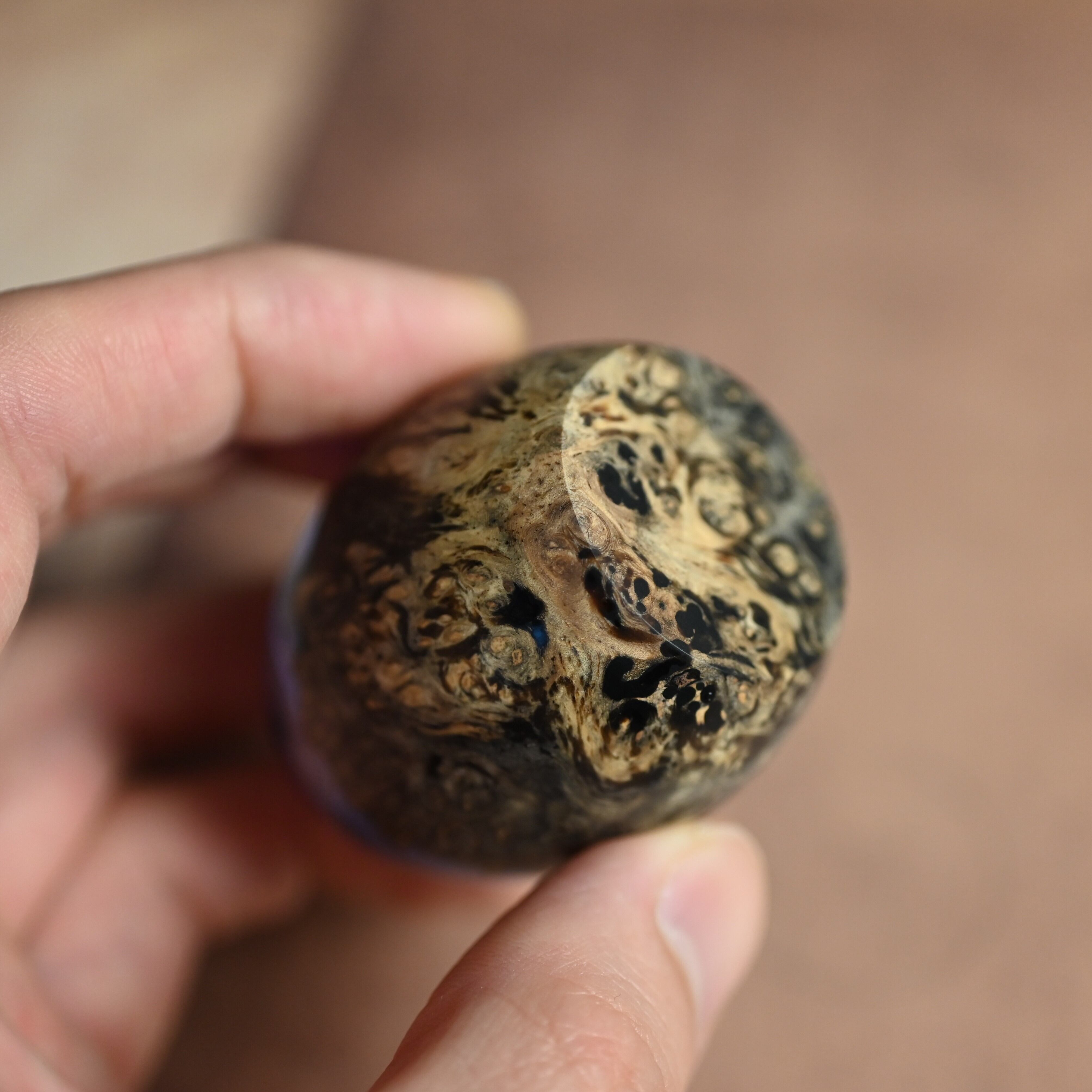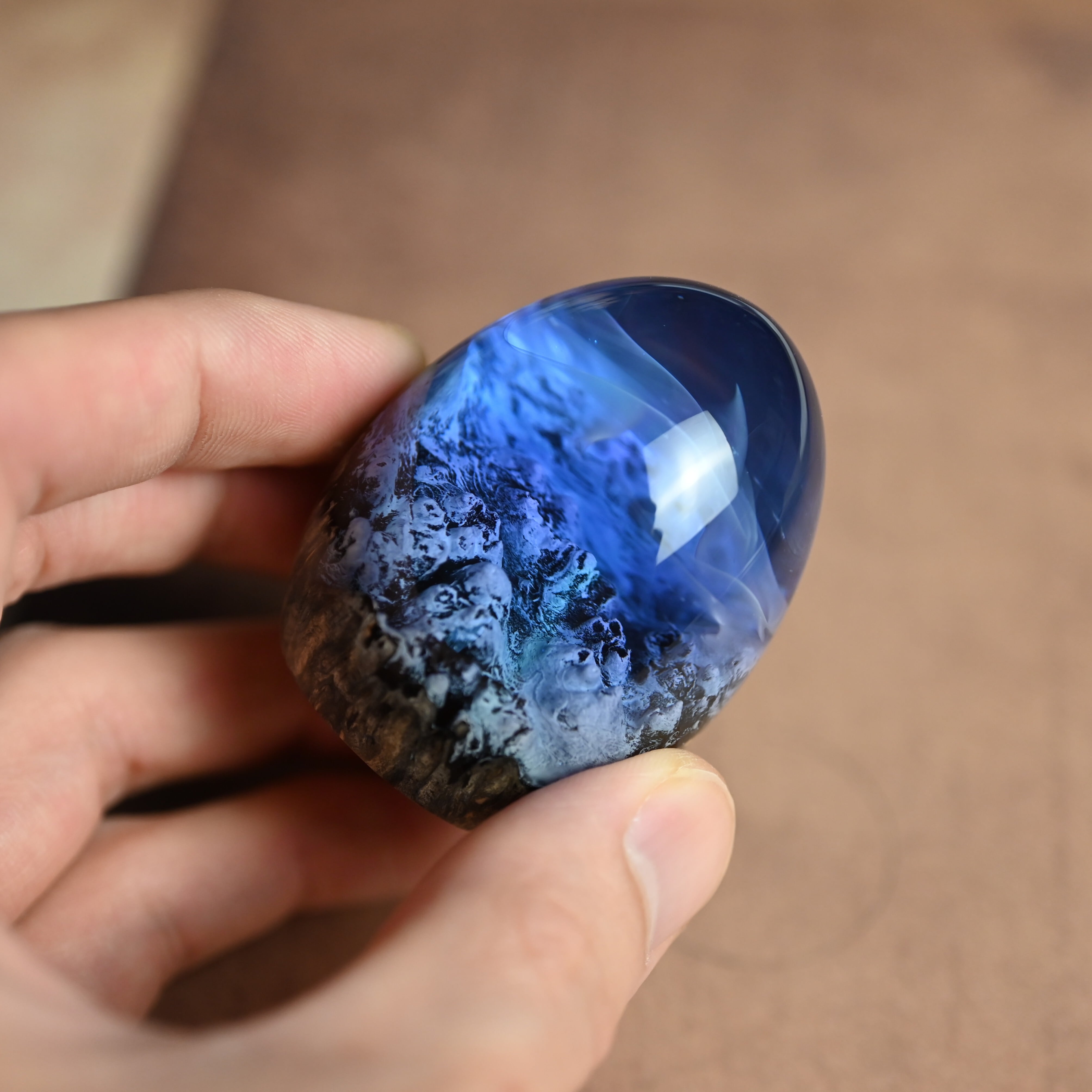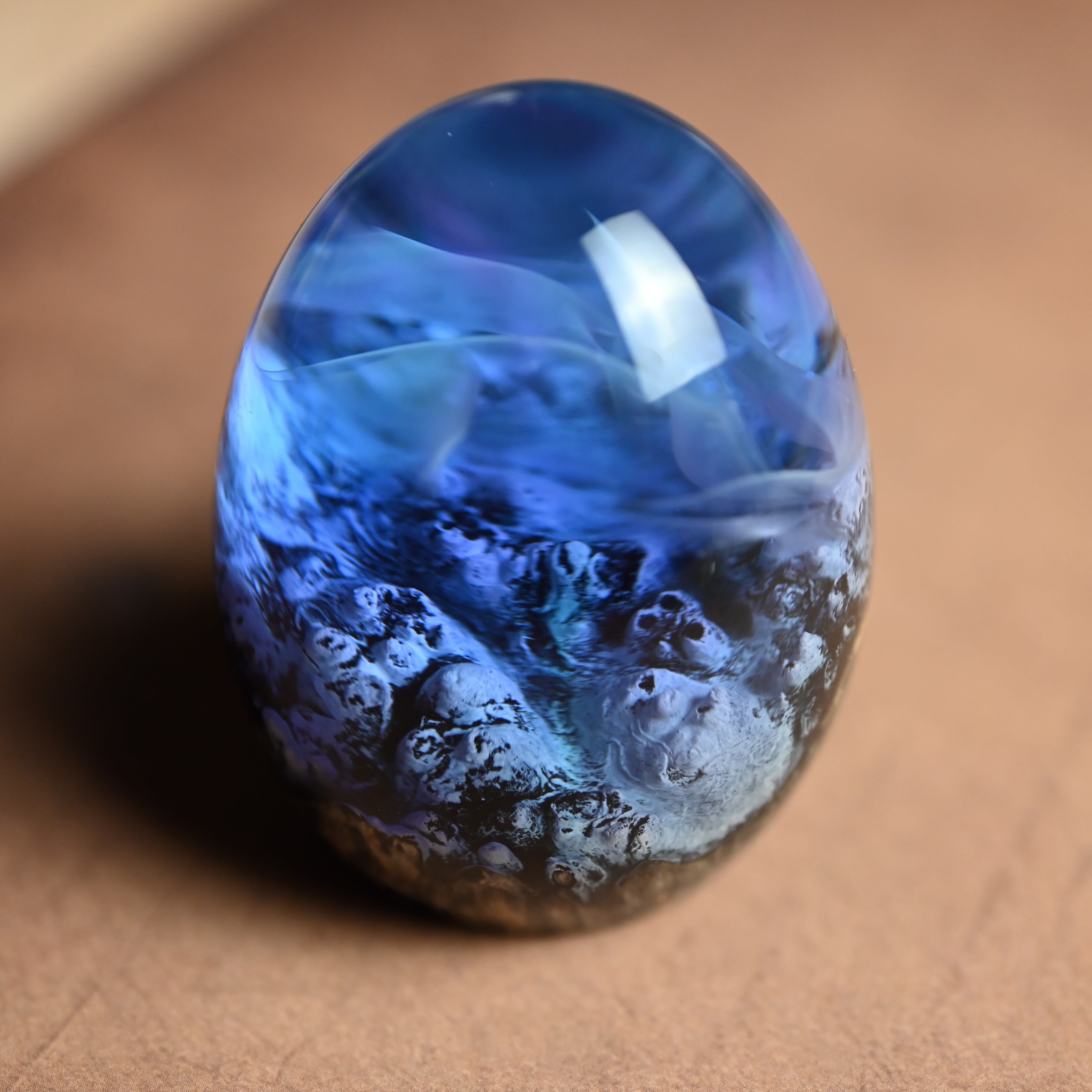 木と樹脂を組み合わせ1つ1つ手作りで仕上げた卵形オブジェ(ペーパーウェイト)になります。
