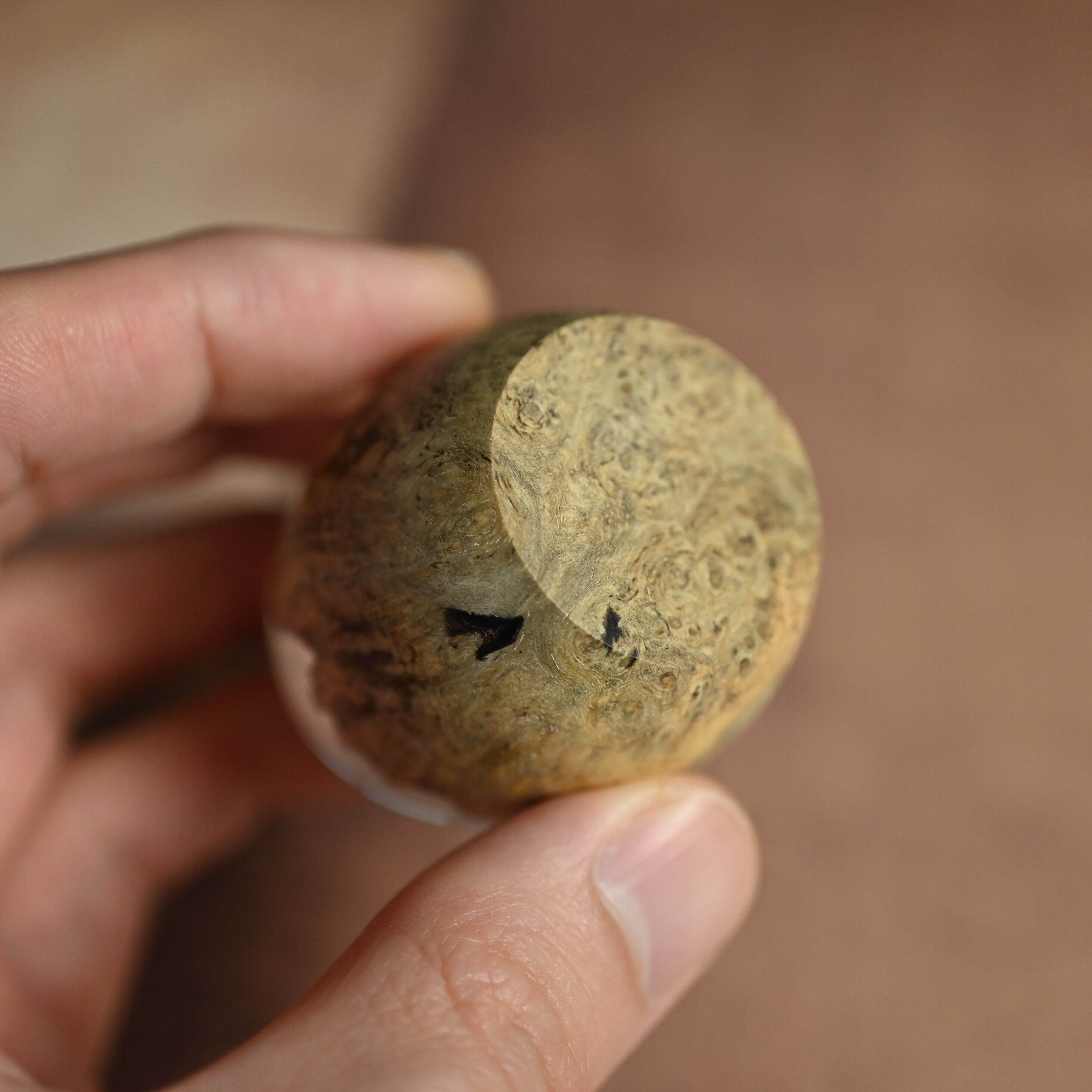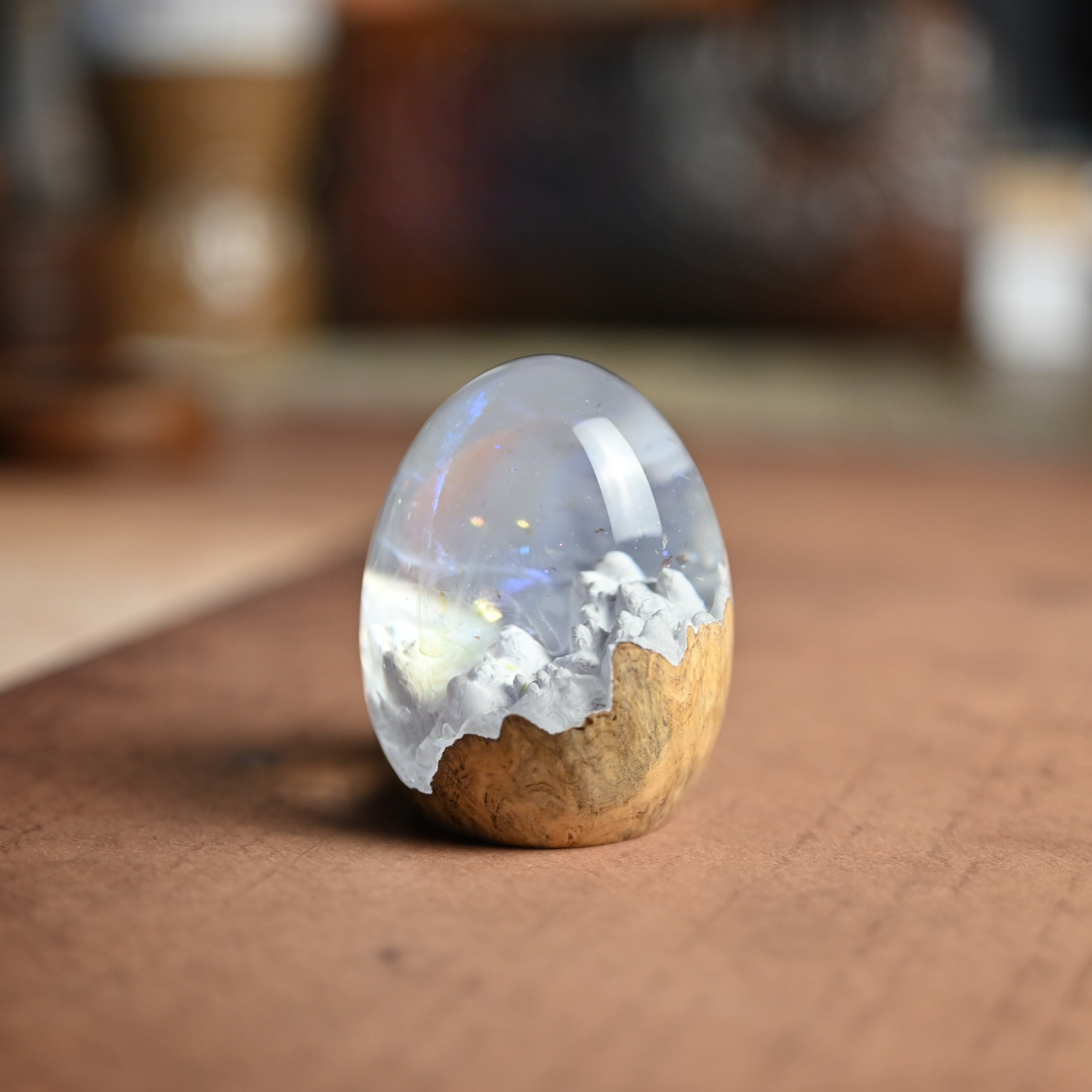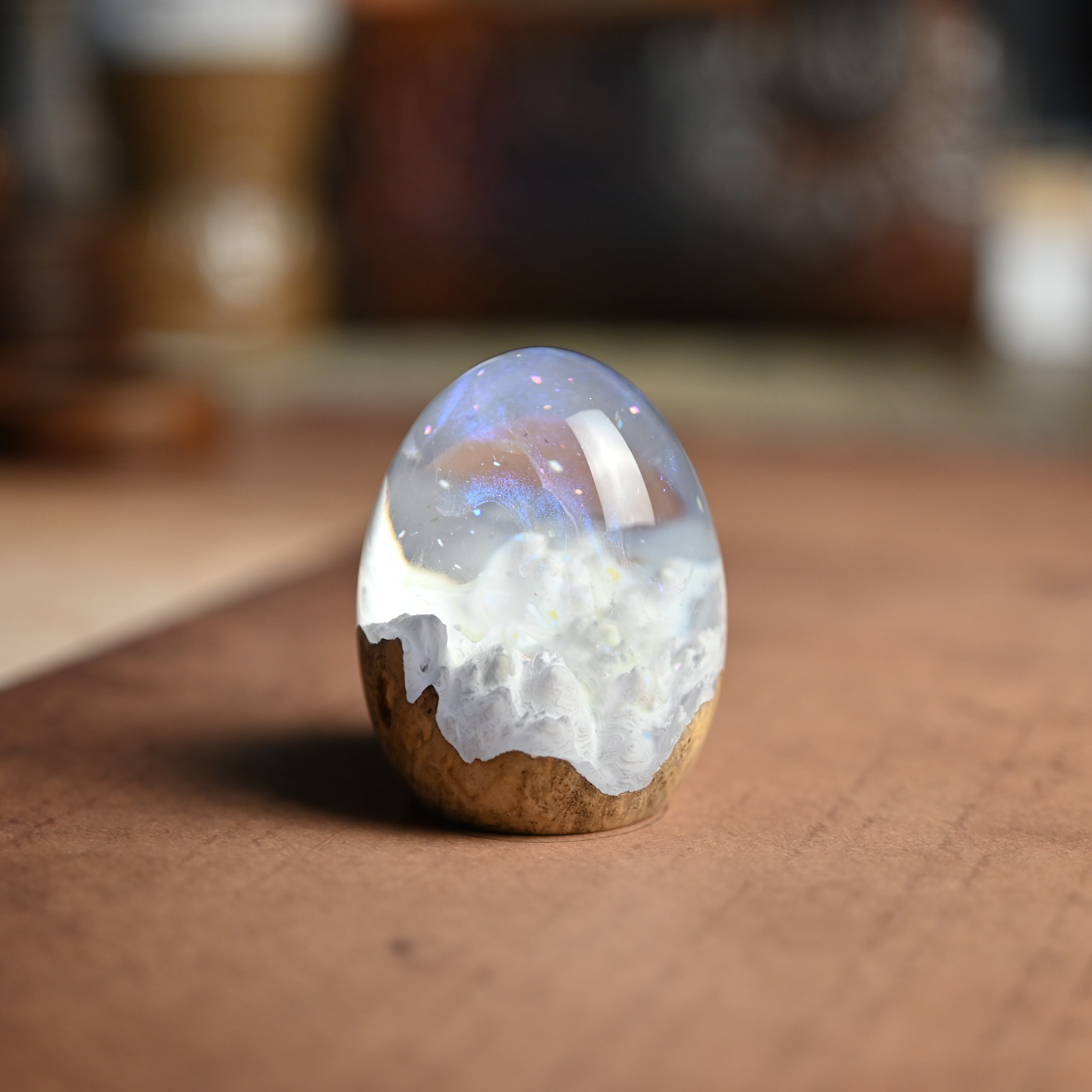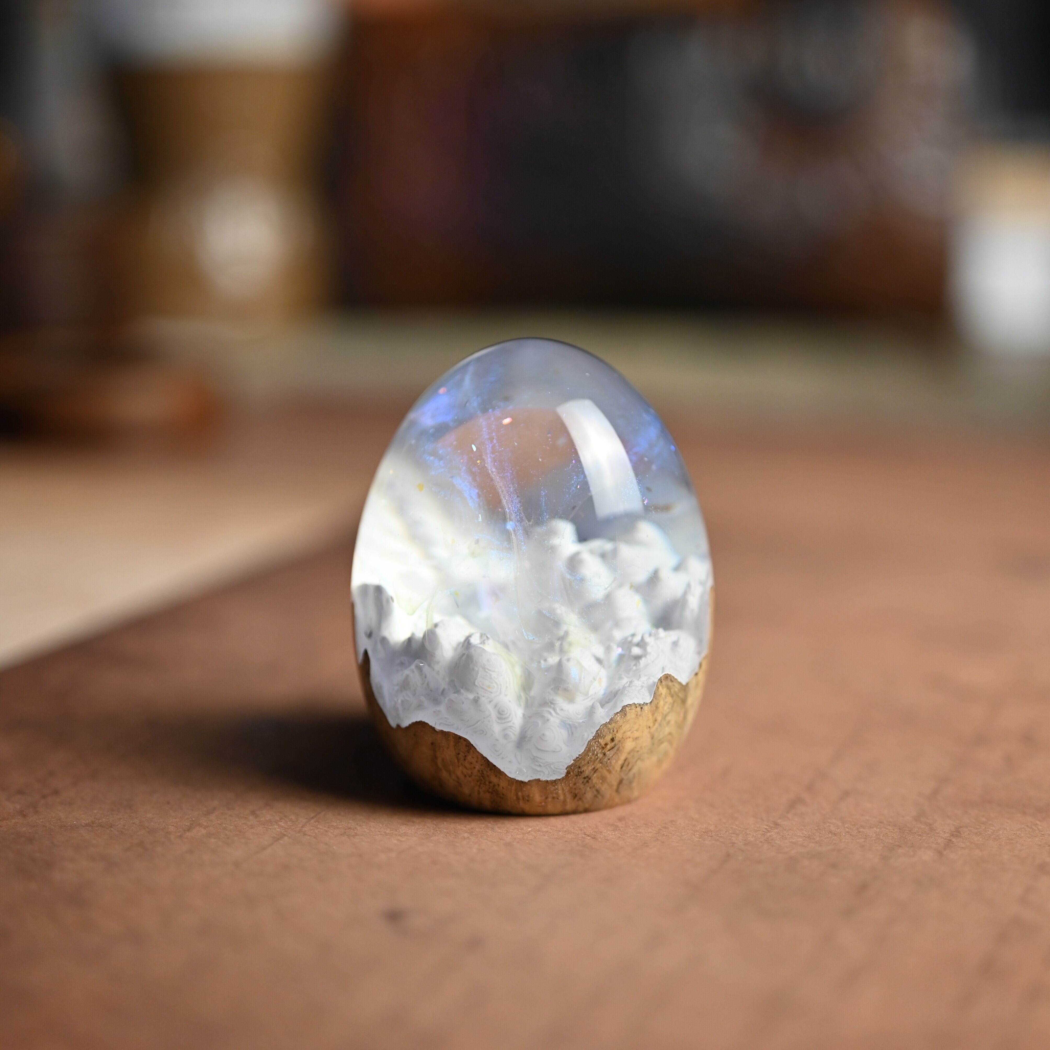 木と樹脂を組み合わせ1つ1つ手作りで仕上げた卵形オブジェ(ペーパーウェイト)になります。