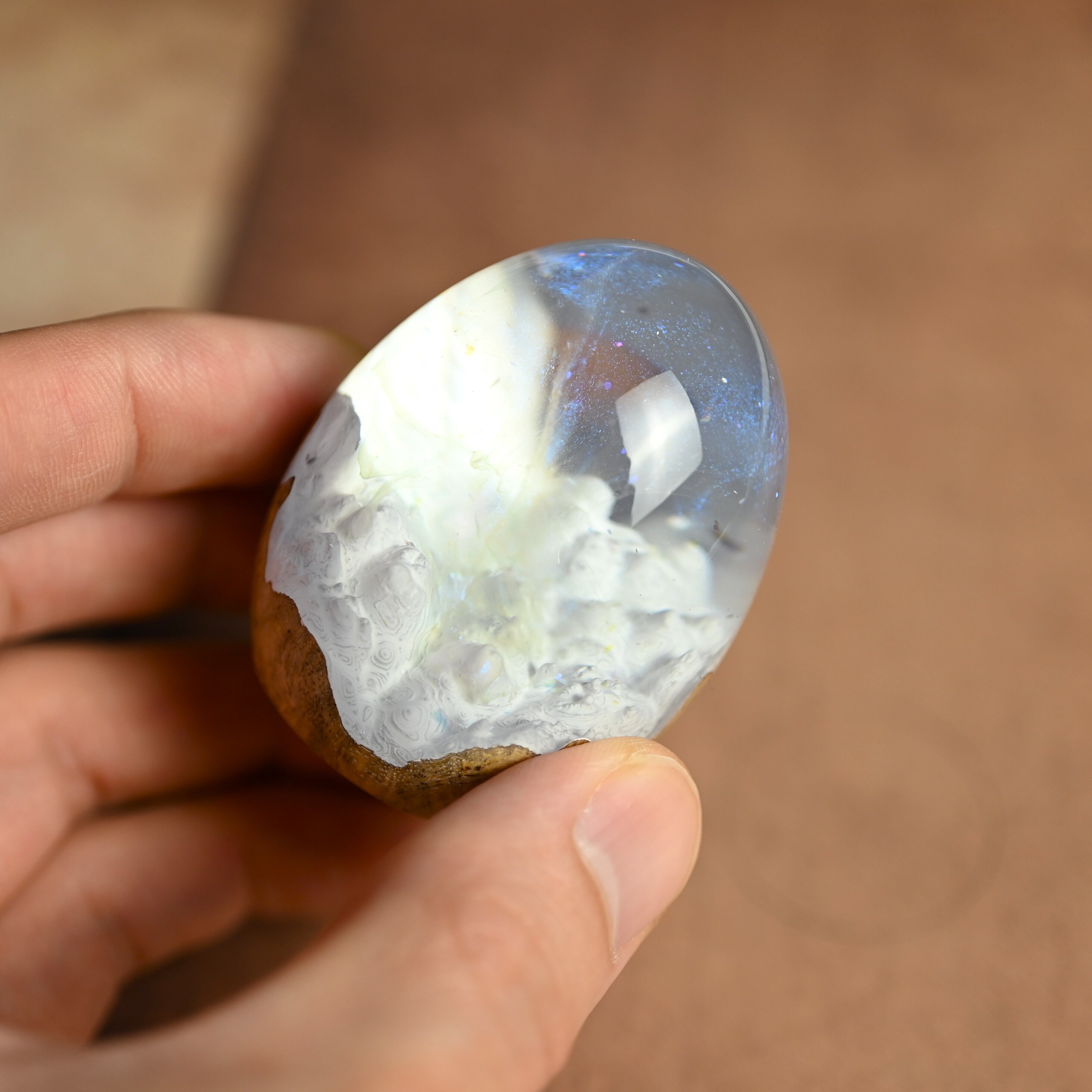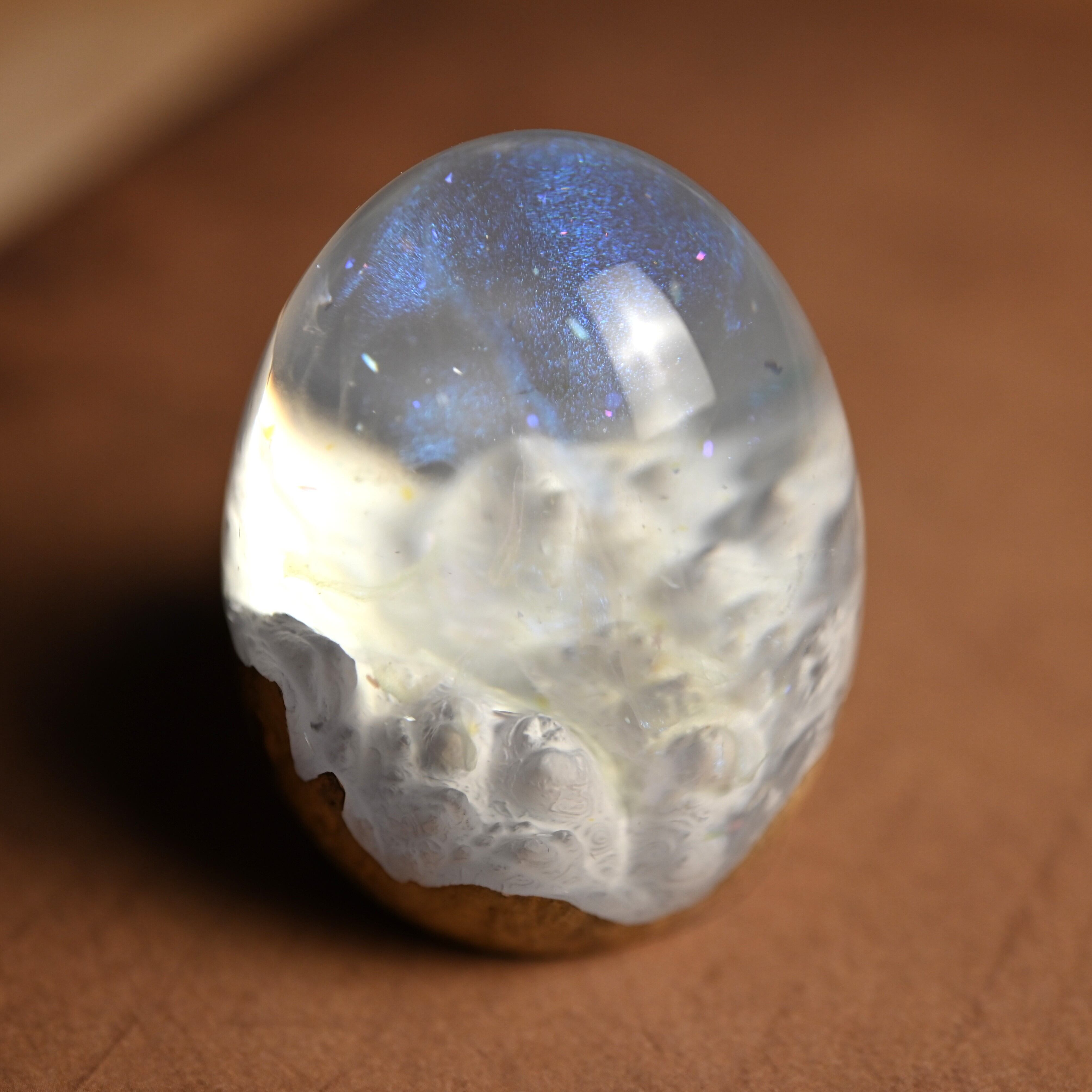 作品内部は景色をイメージし製作しており、より鮮明に魅せるためレジンの透明度と艶にこだわって仕上げました。