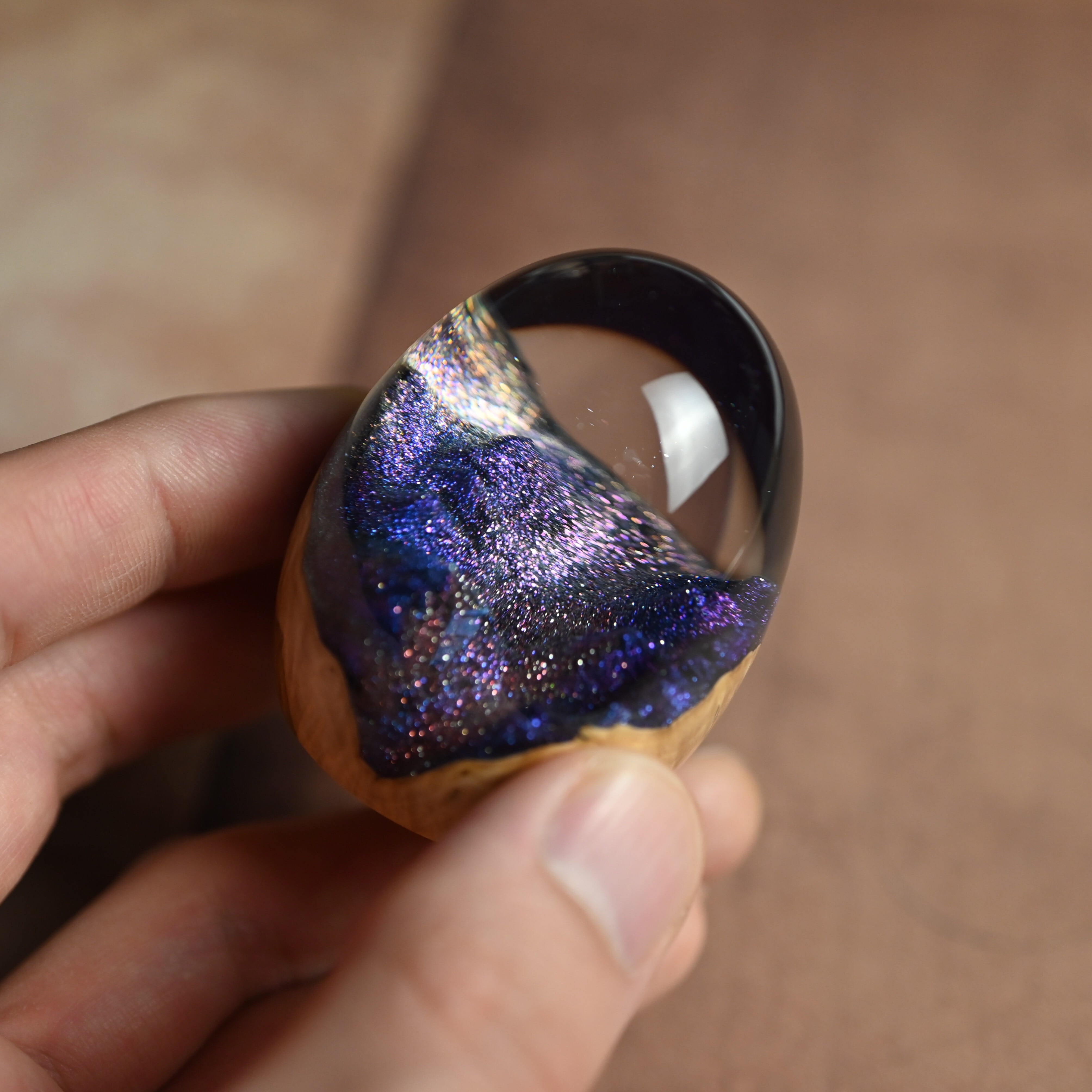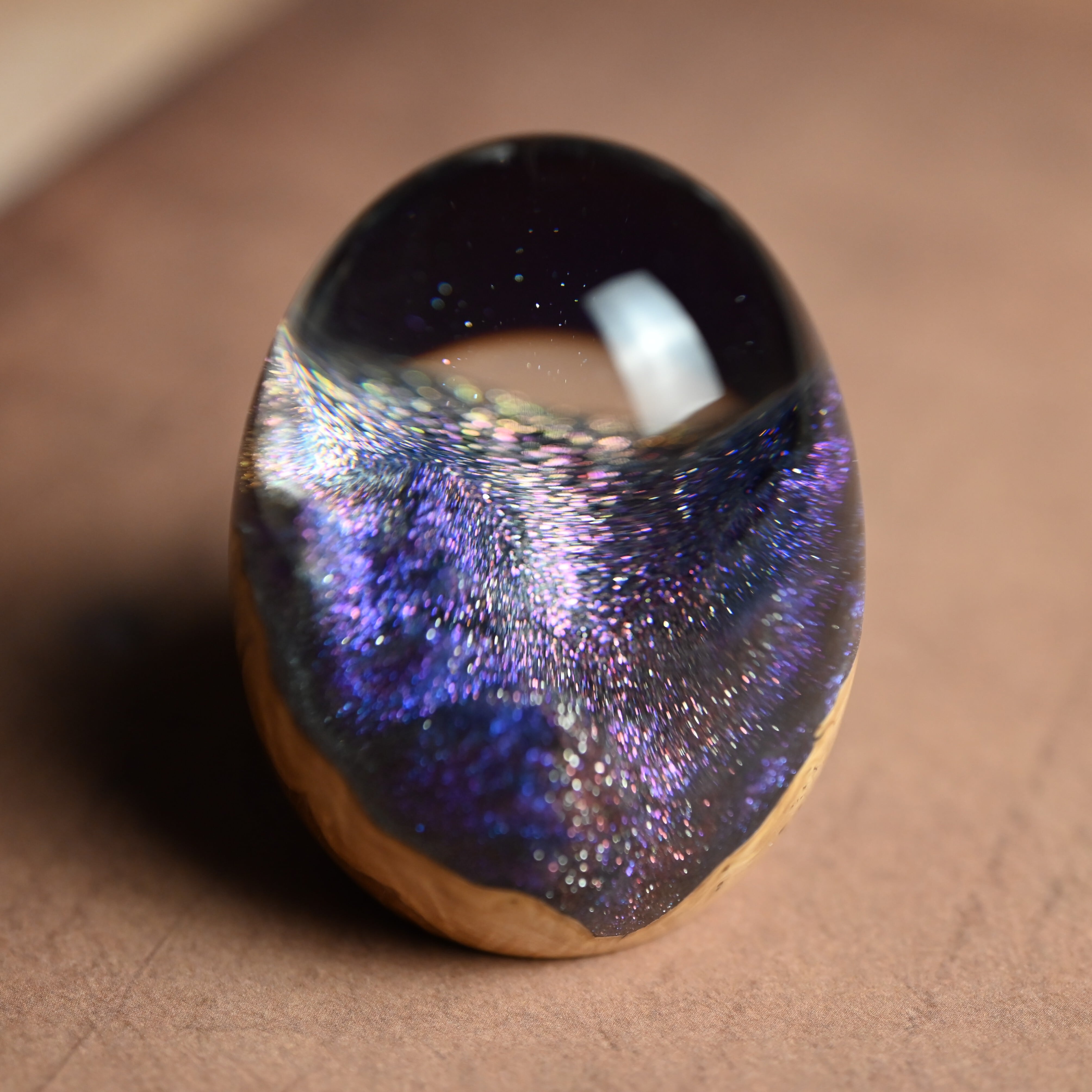 作品内部は景色をイメージし製作しており、より鮮明に魅せるためレジンの透明度と艶にこだわって仕上げました。