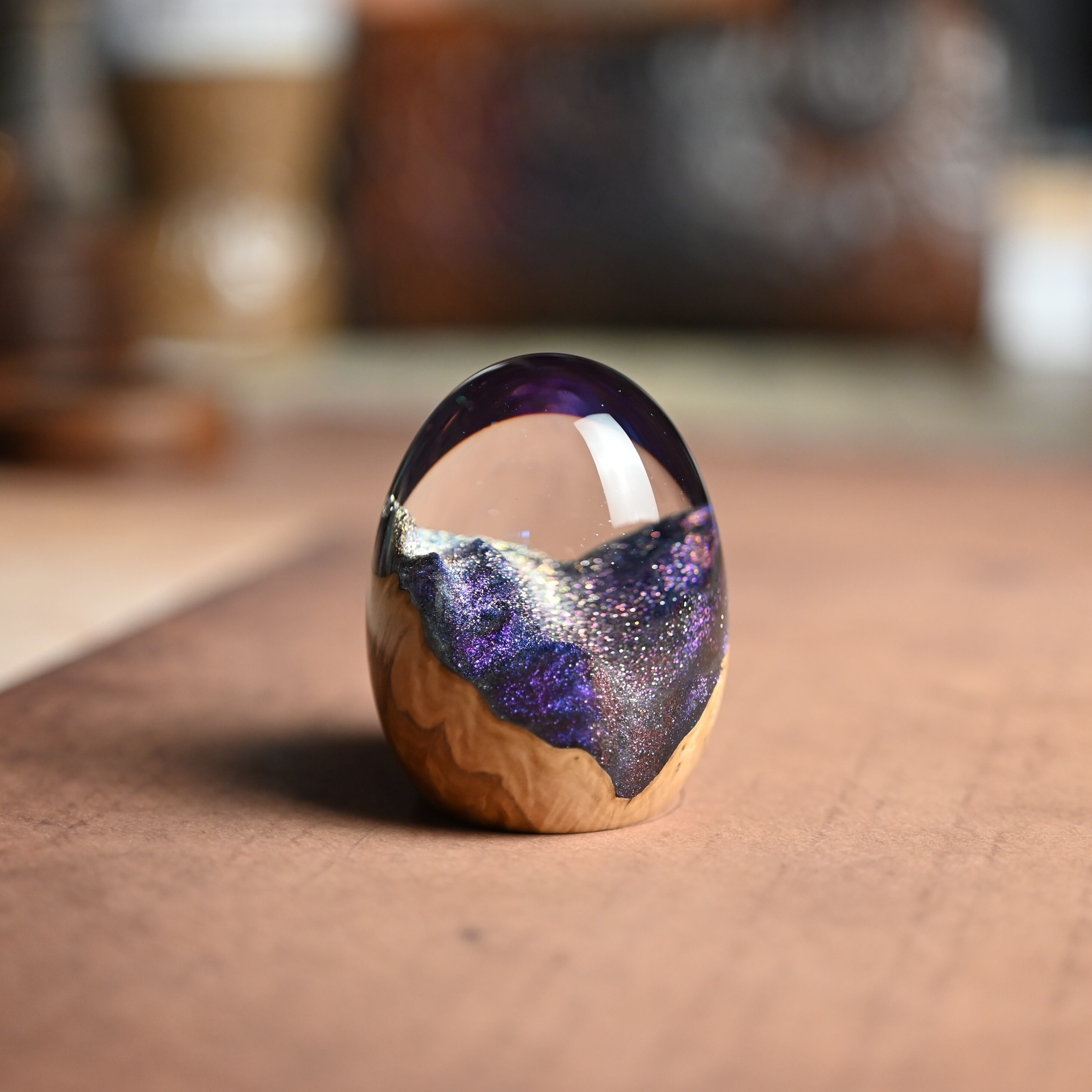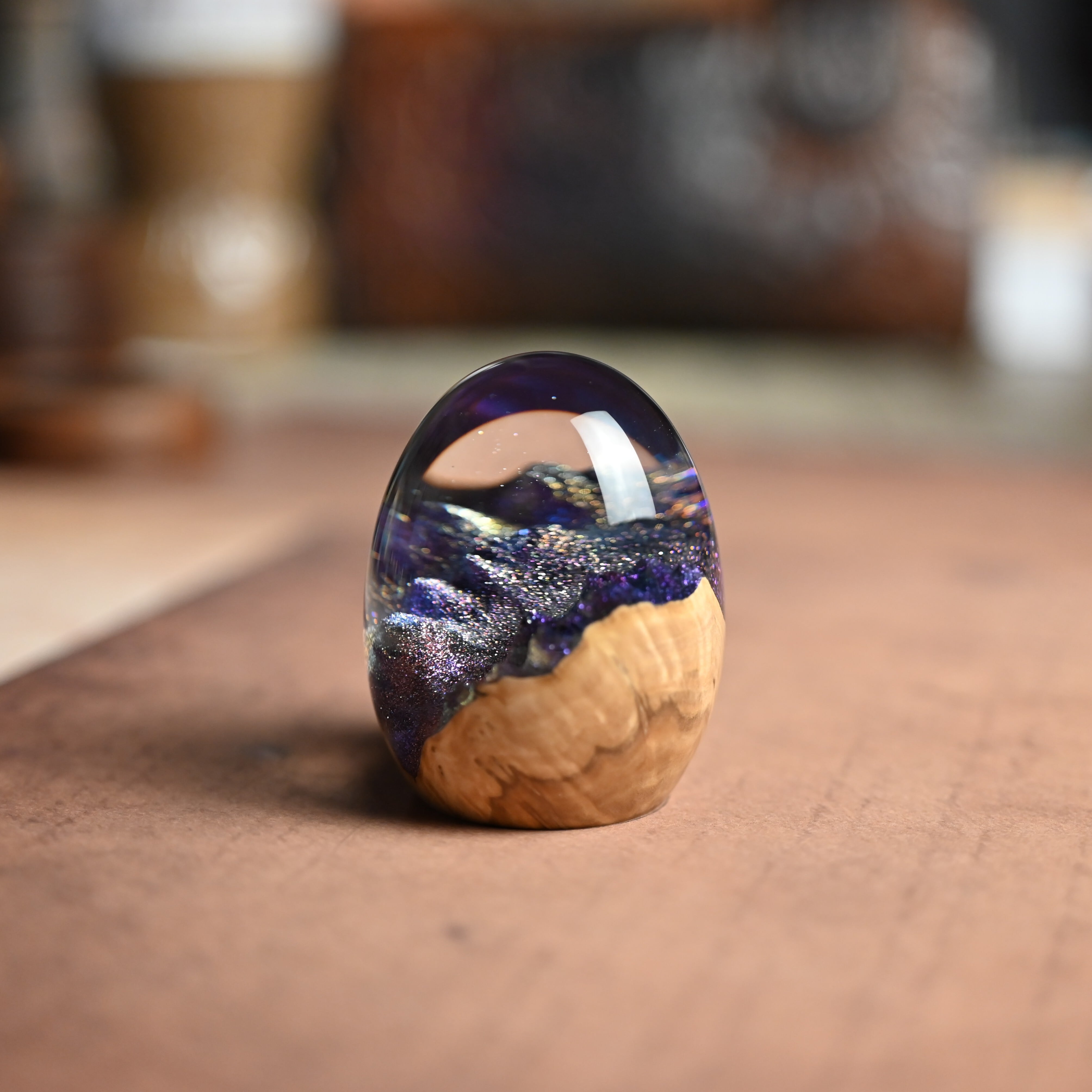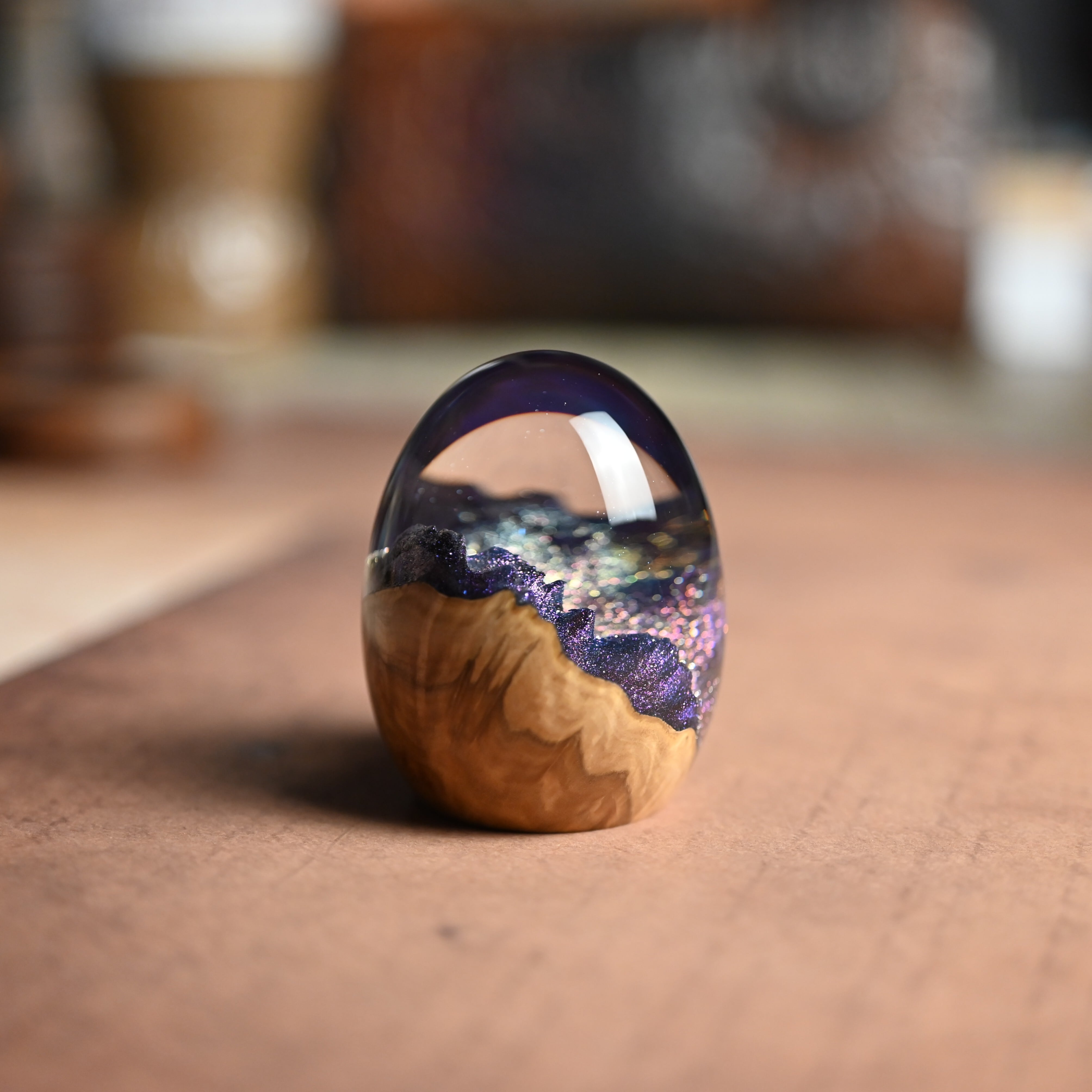 木と樹脂を組み合わせ1つ1つ手作りで仕上げた卵形オブジェ(ペーパーウェイト)になります。