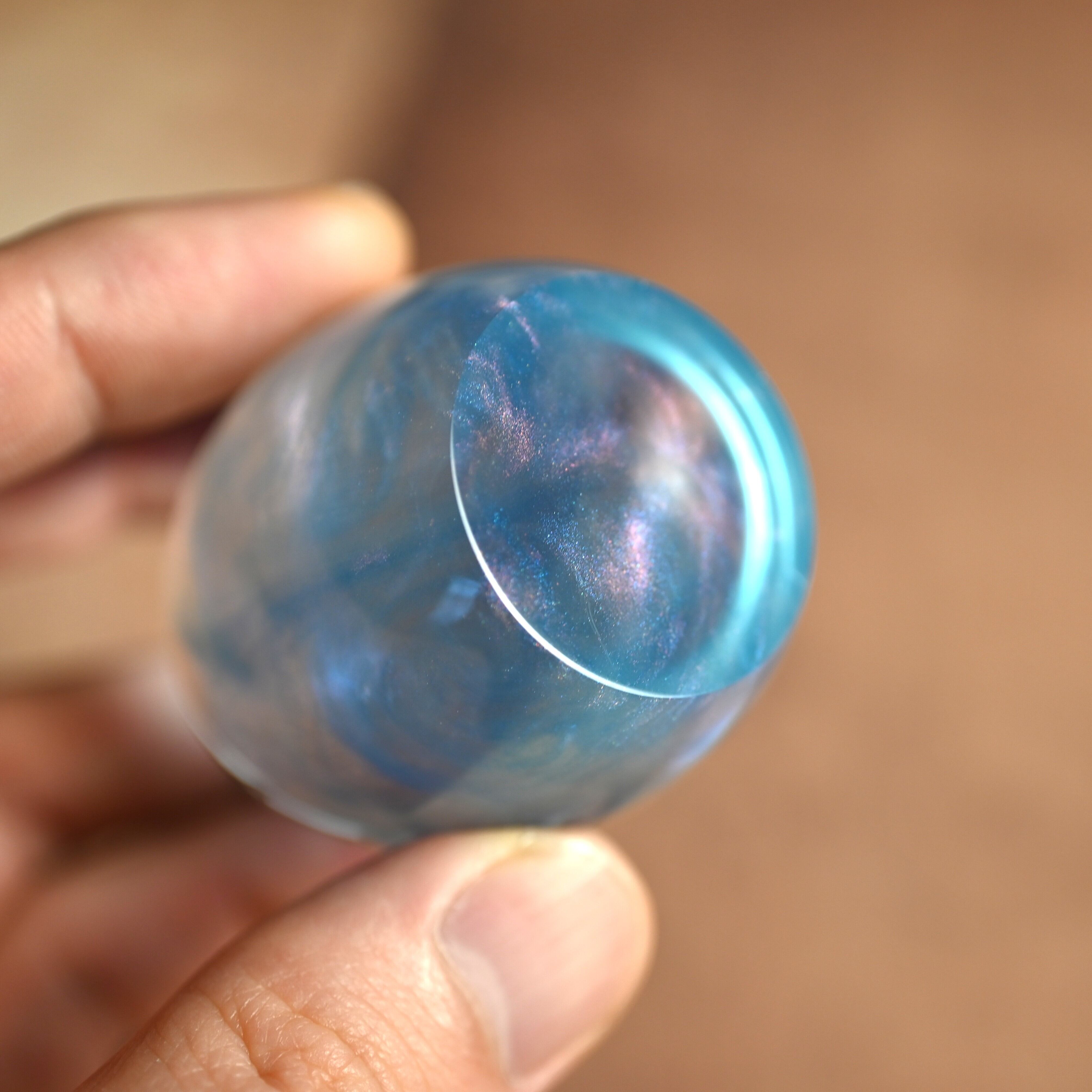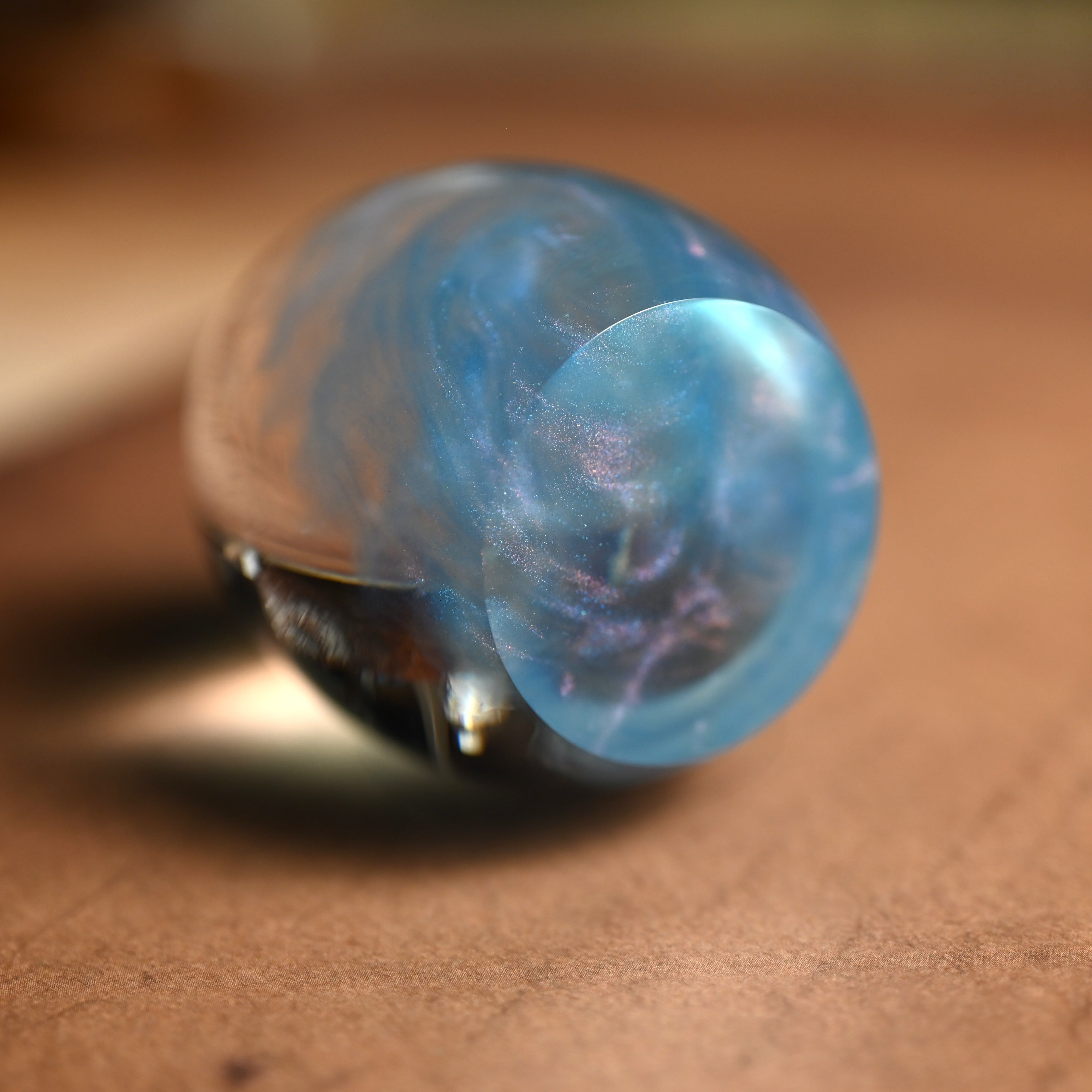 作品内部は景色をイメージし製作しており、より鮮明に魅せるためレジンの透明度と艶にこだわって仕上げました。