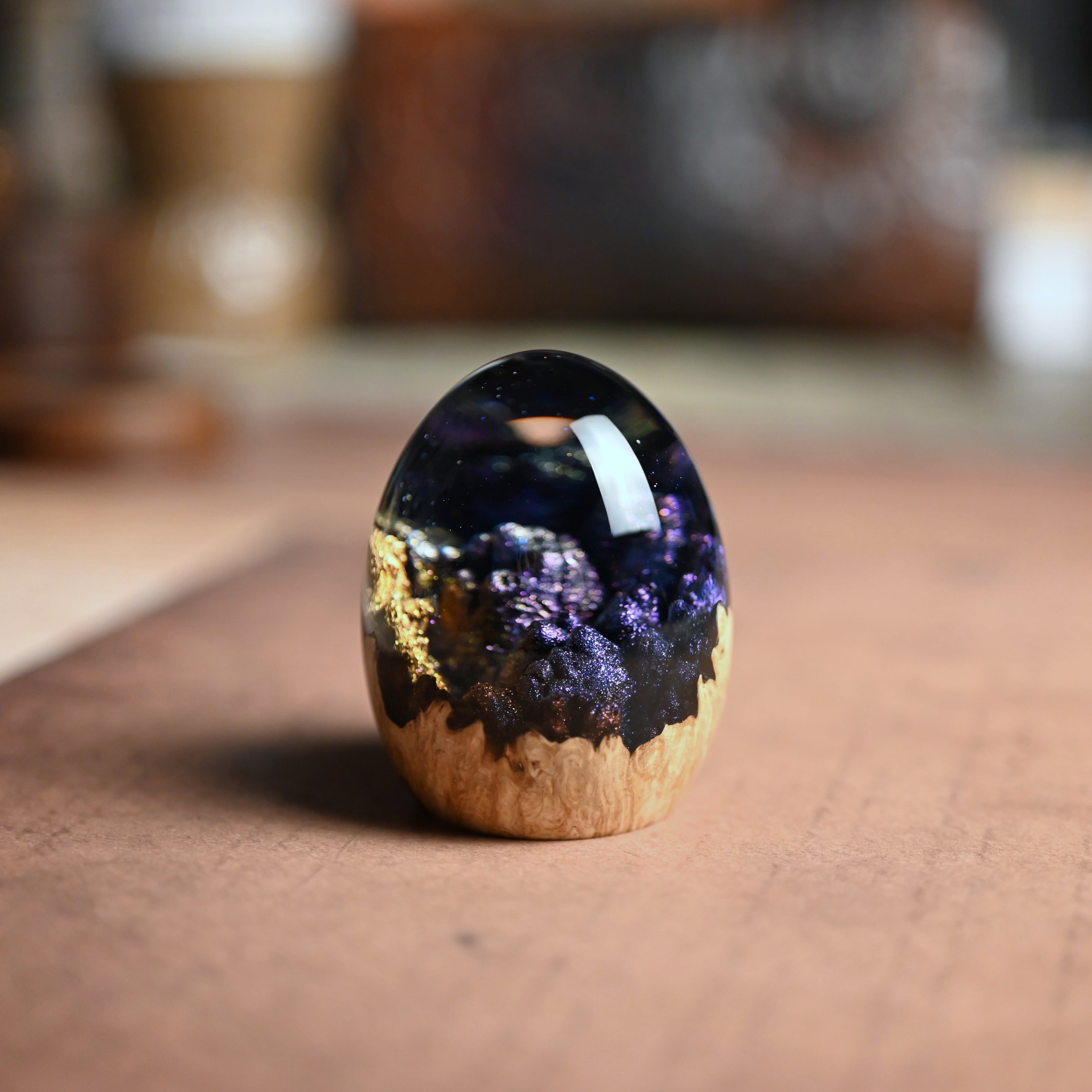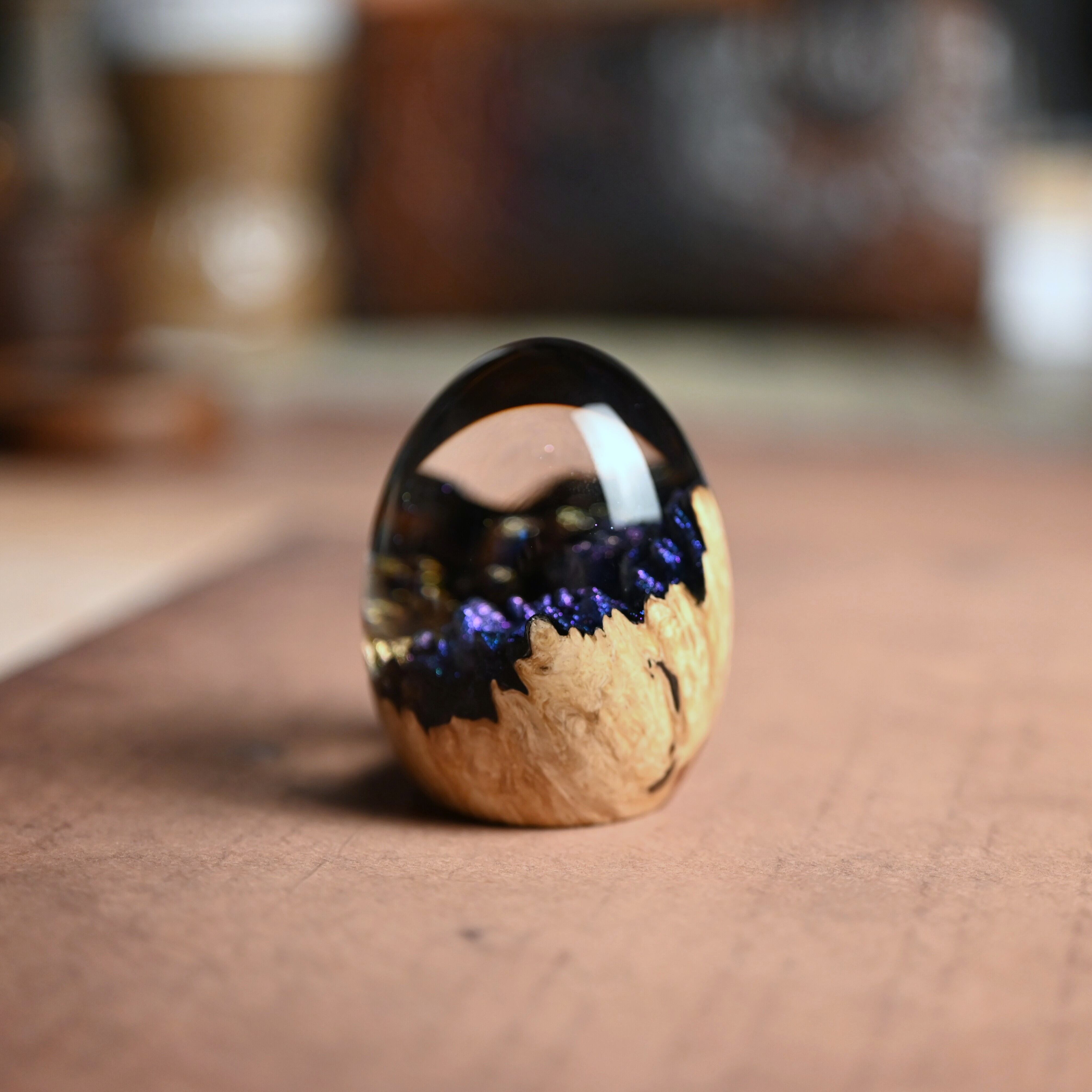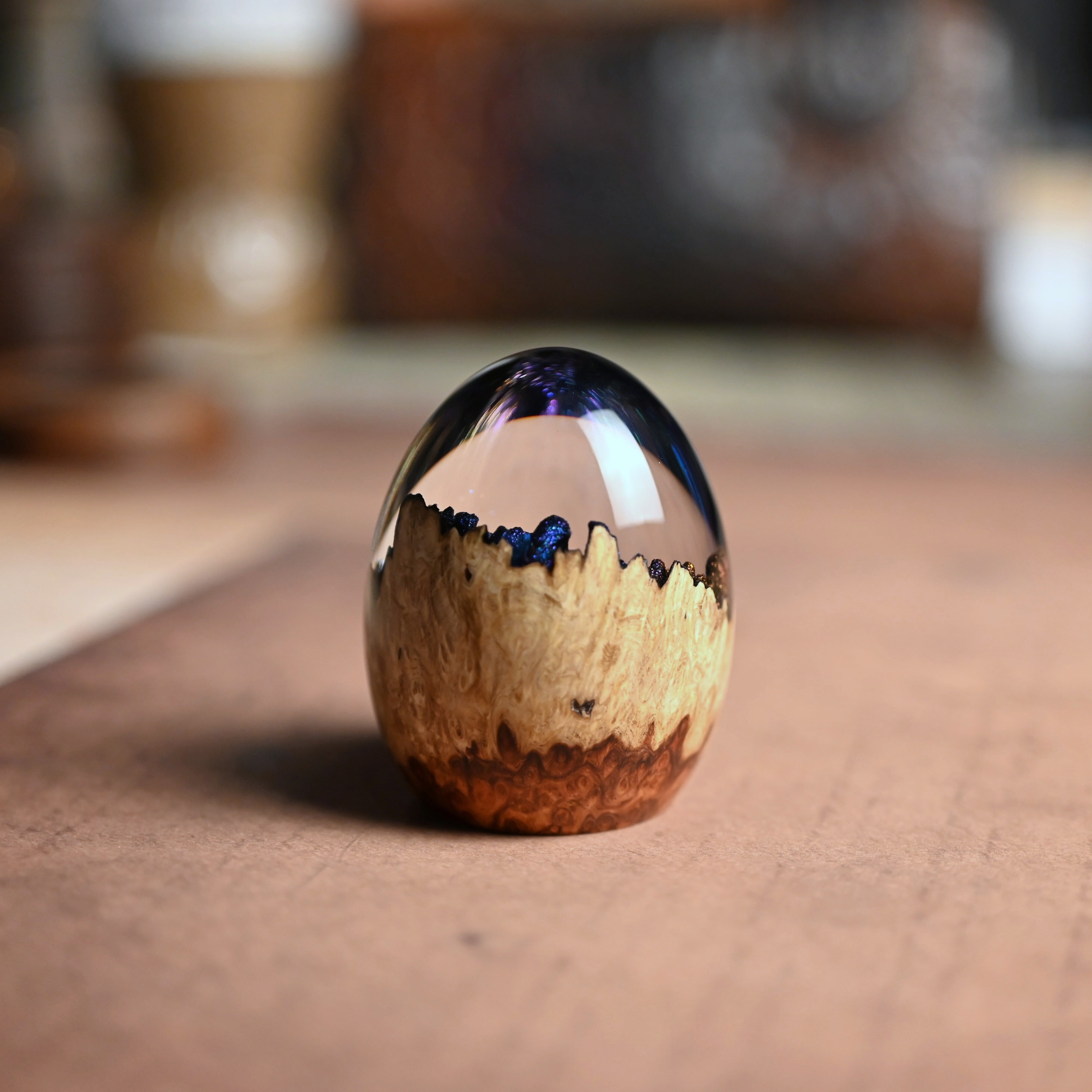 木と樹脂を組み合わせ1つ1つ手作りで仕上げた卵形オブジェ(ペーパーウェイト)になります。