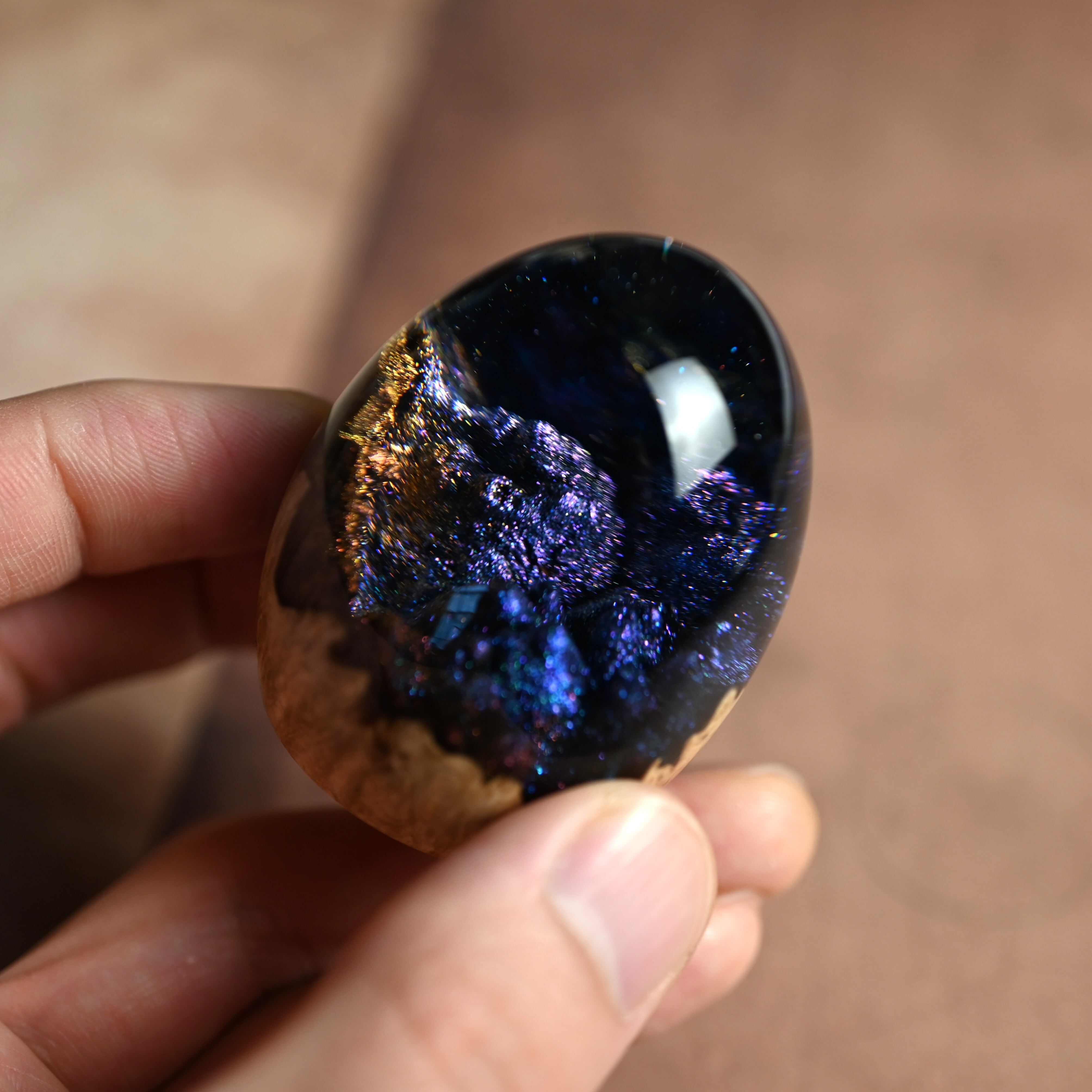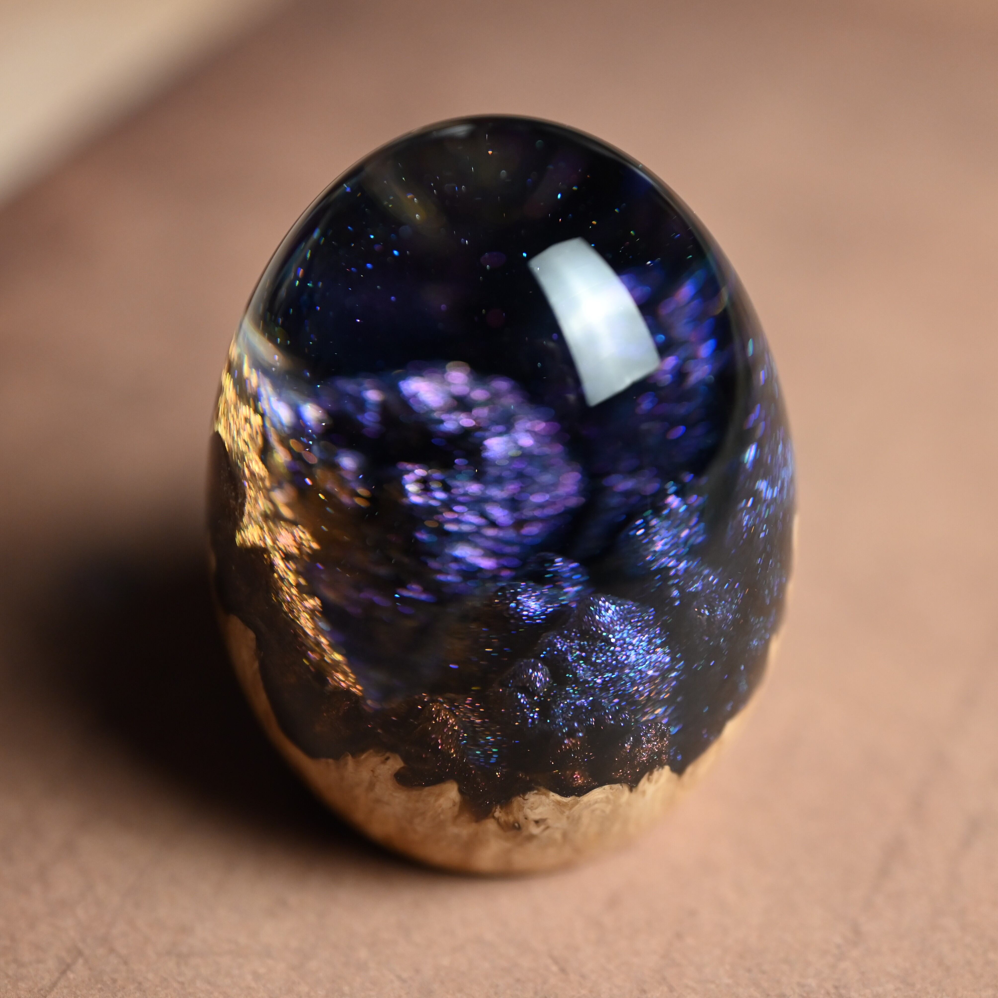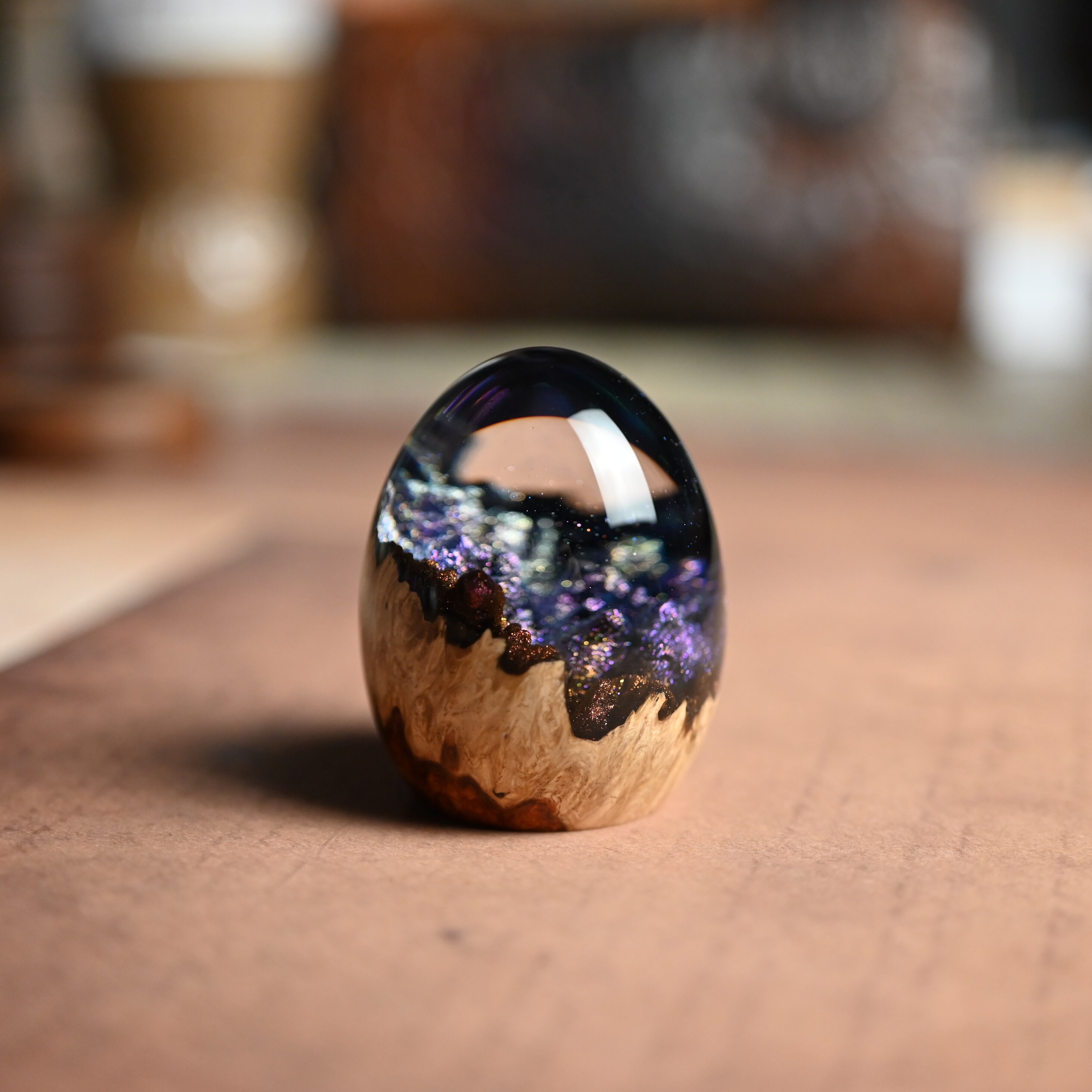 木と樹脂を組み合わせ1つ1つ手作りで仕上げた卵形オブジェ(ペーパーウェイト)になります。