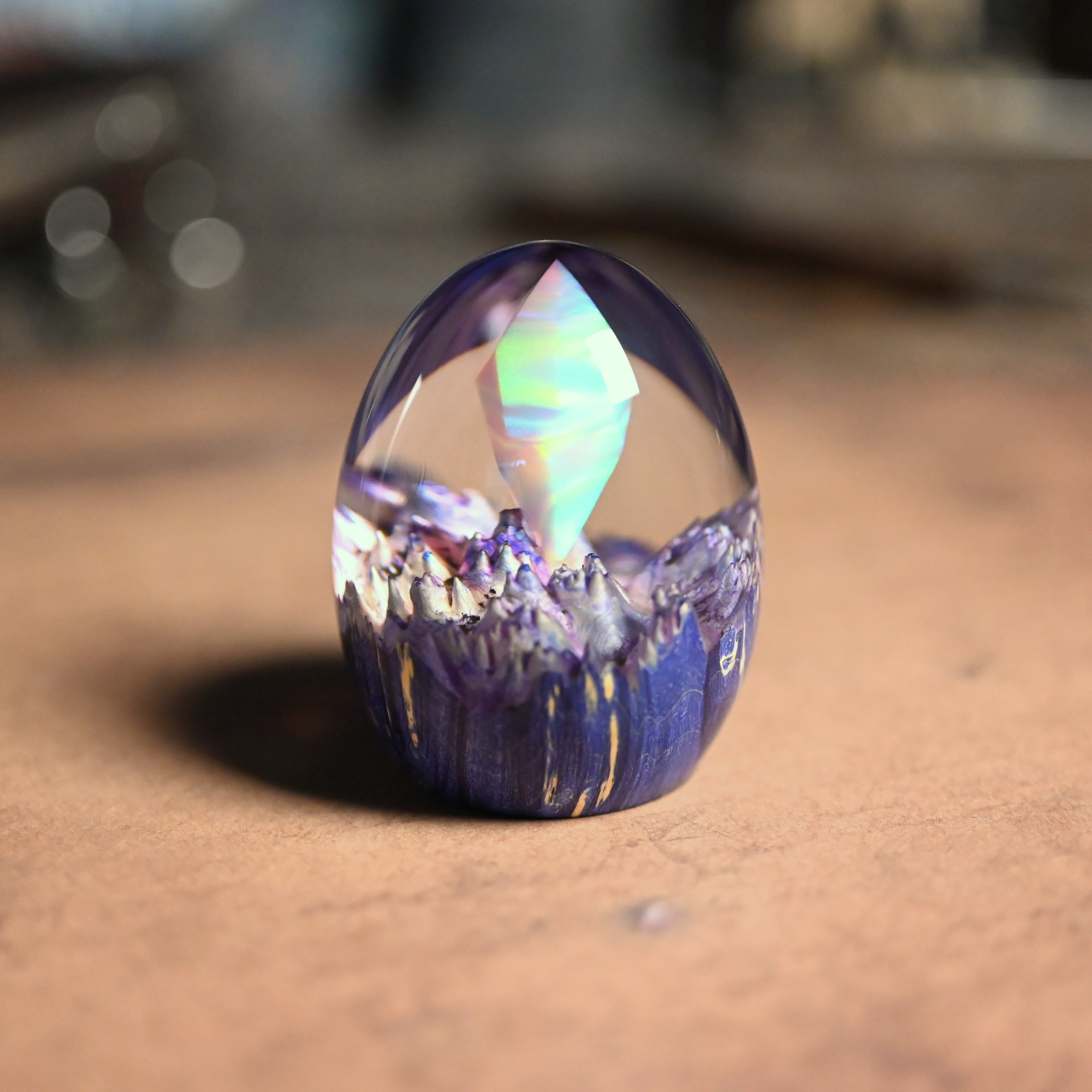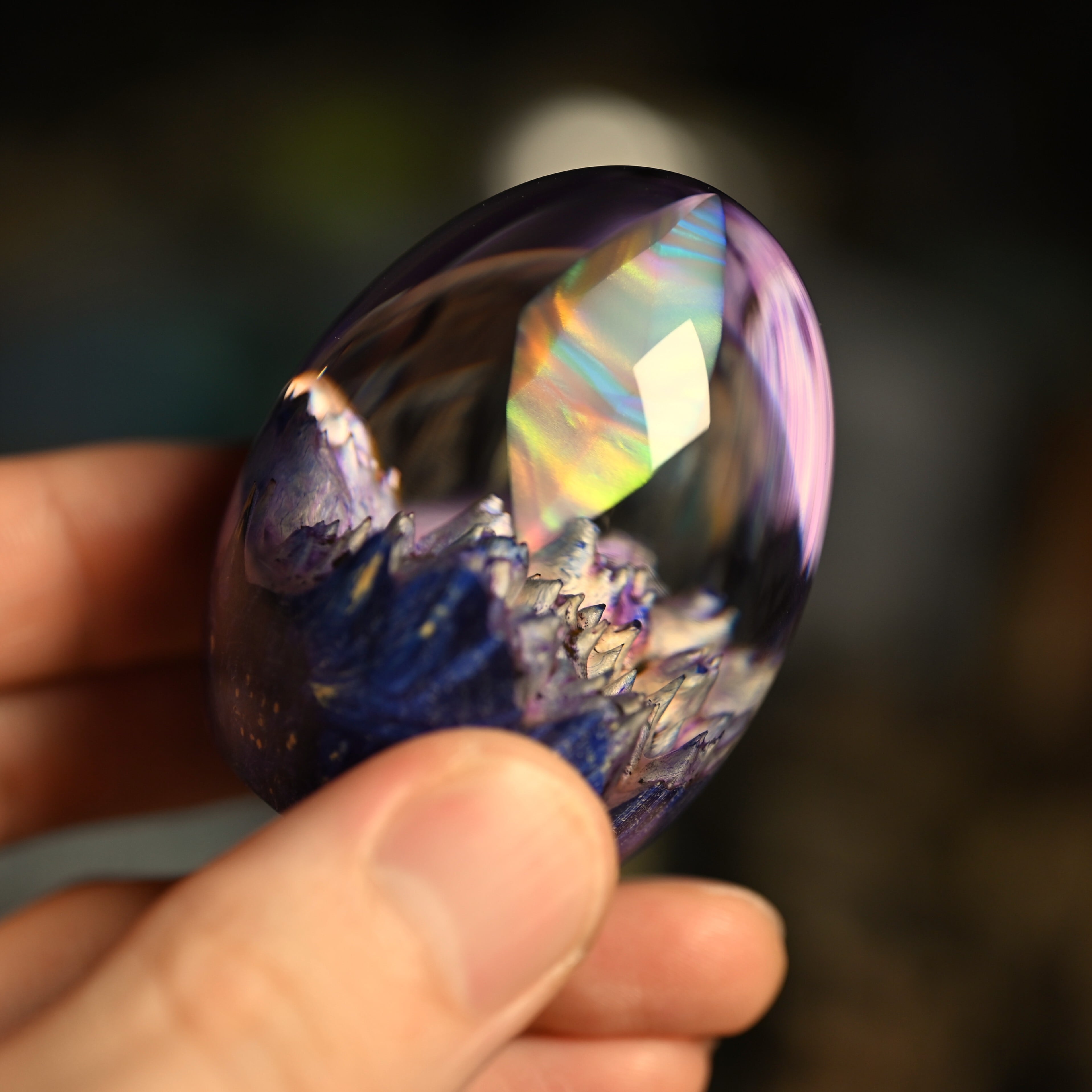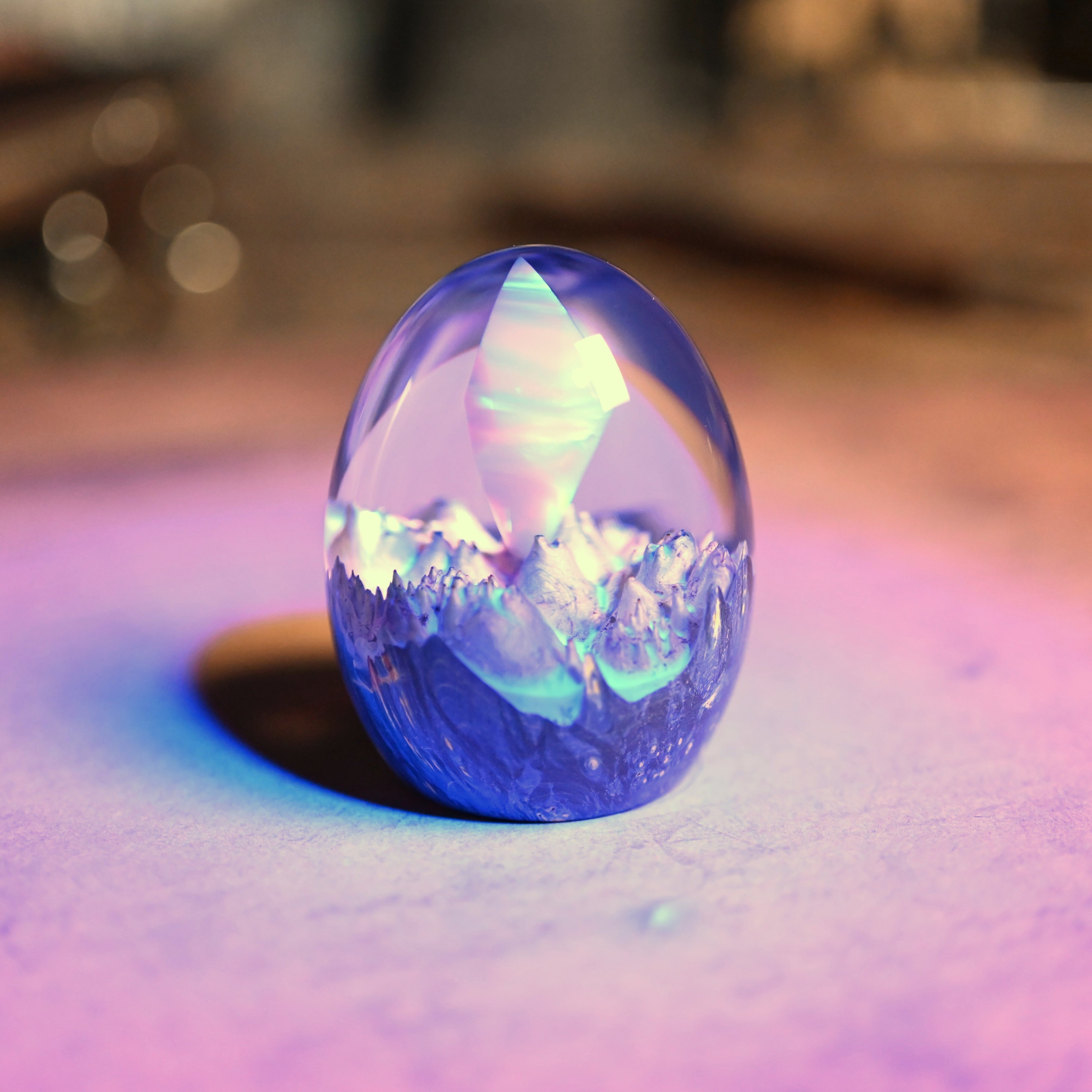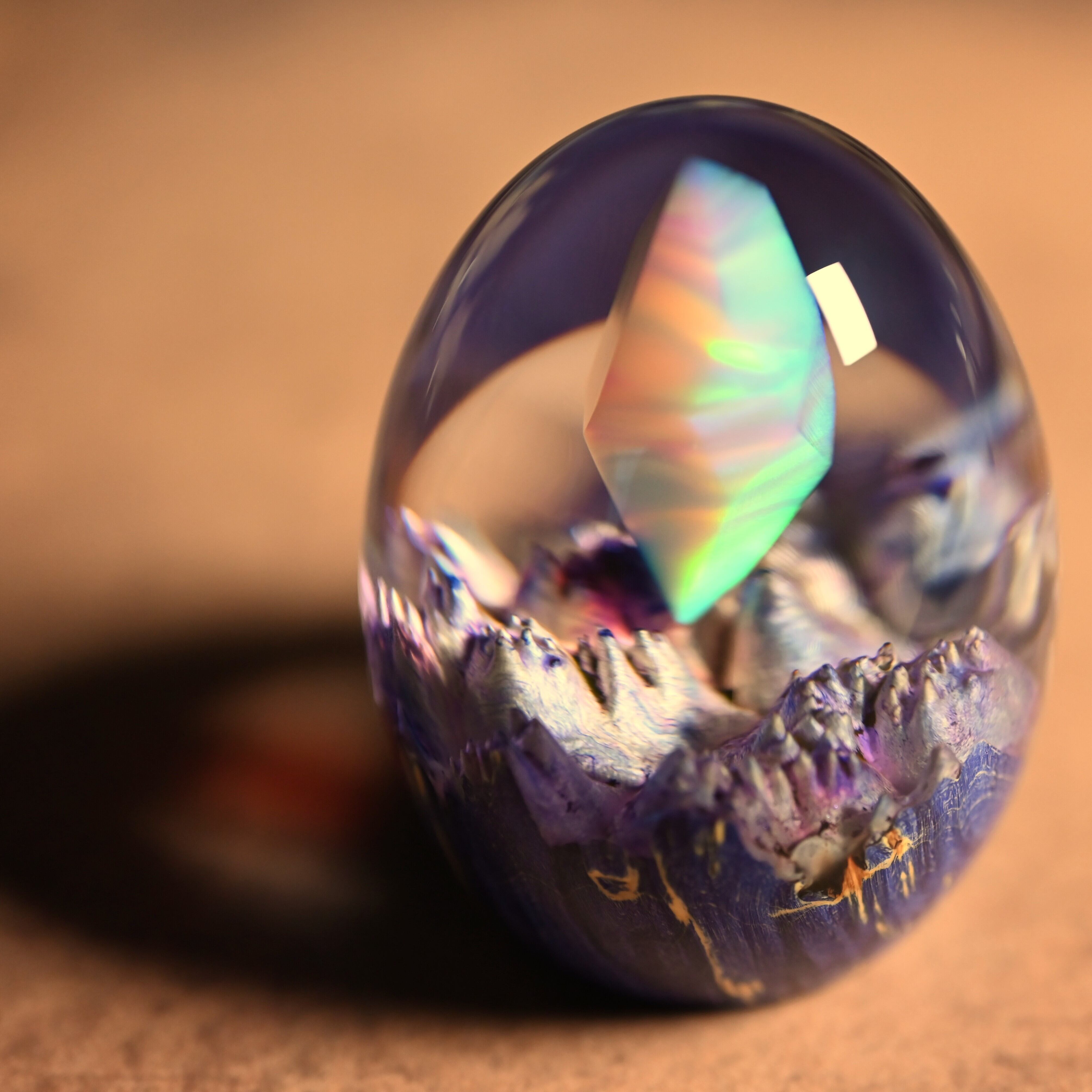 作品内部は景色をイメージし製作しており、より鮮明に魅せるためレジンの透明度と艶にこだわって仕上げました。