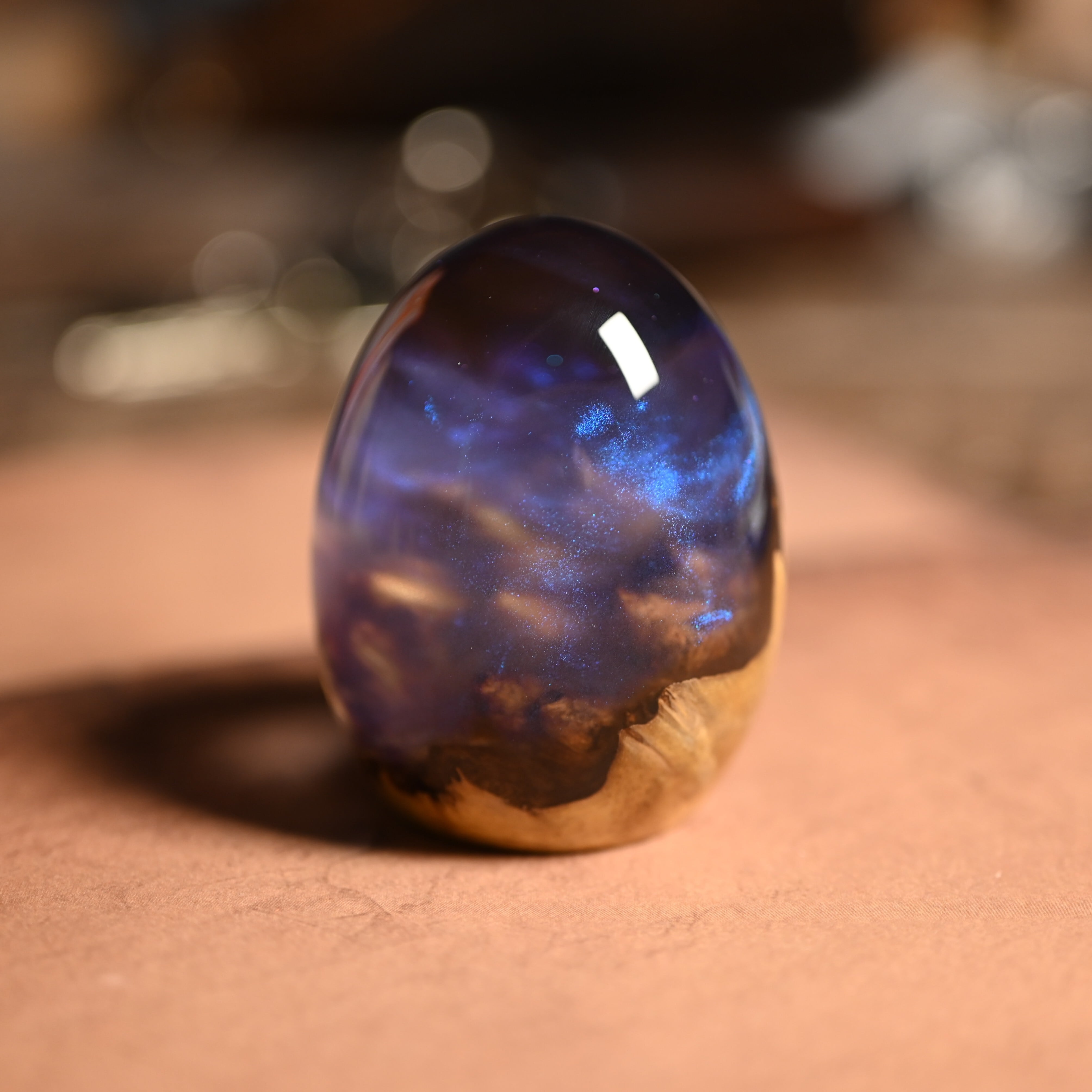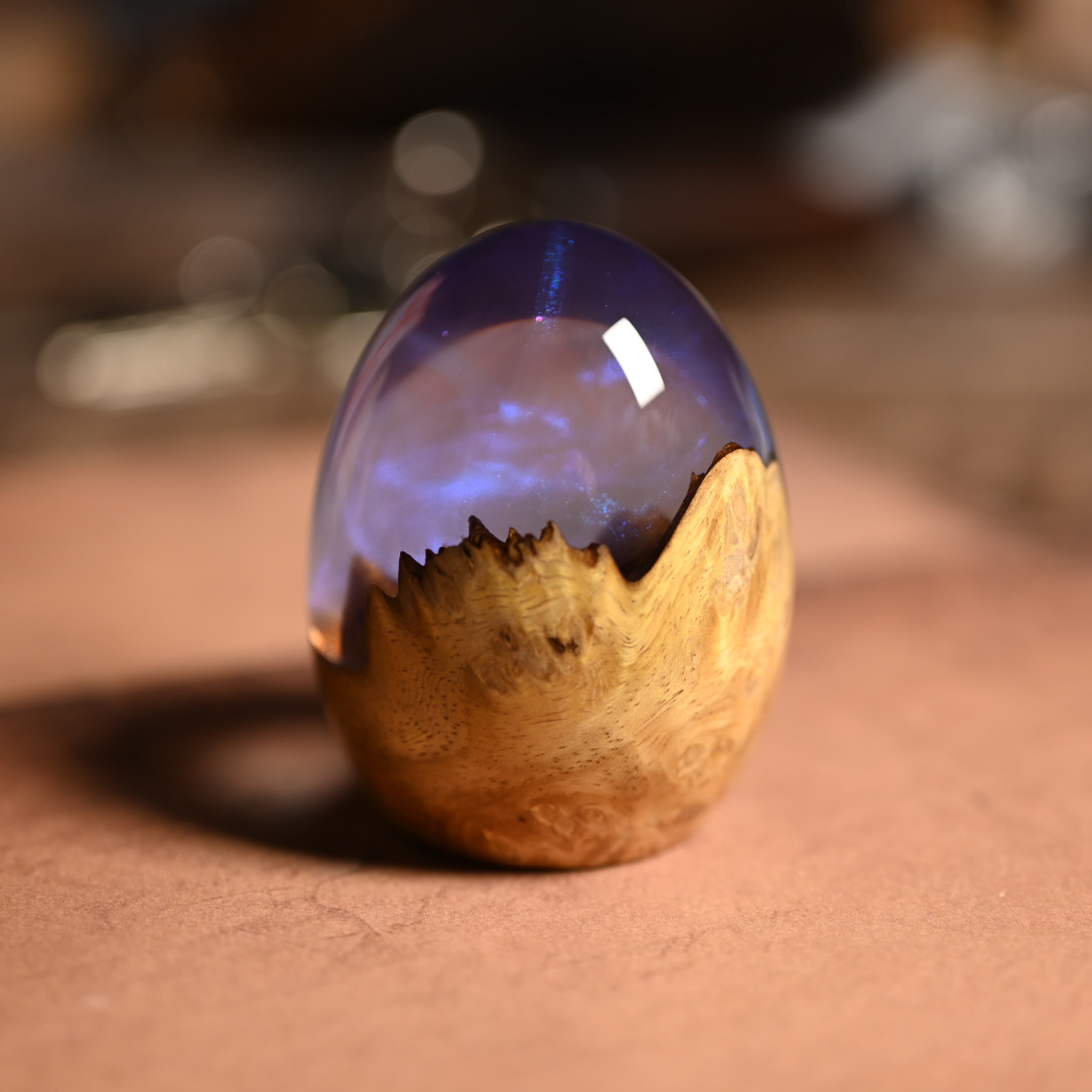 木と樹脂を組み合わせ1つ1つ手作りで仕上げた卵形オブジェ(ペーパーウェイト)になります。