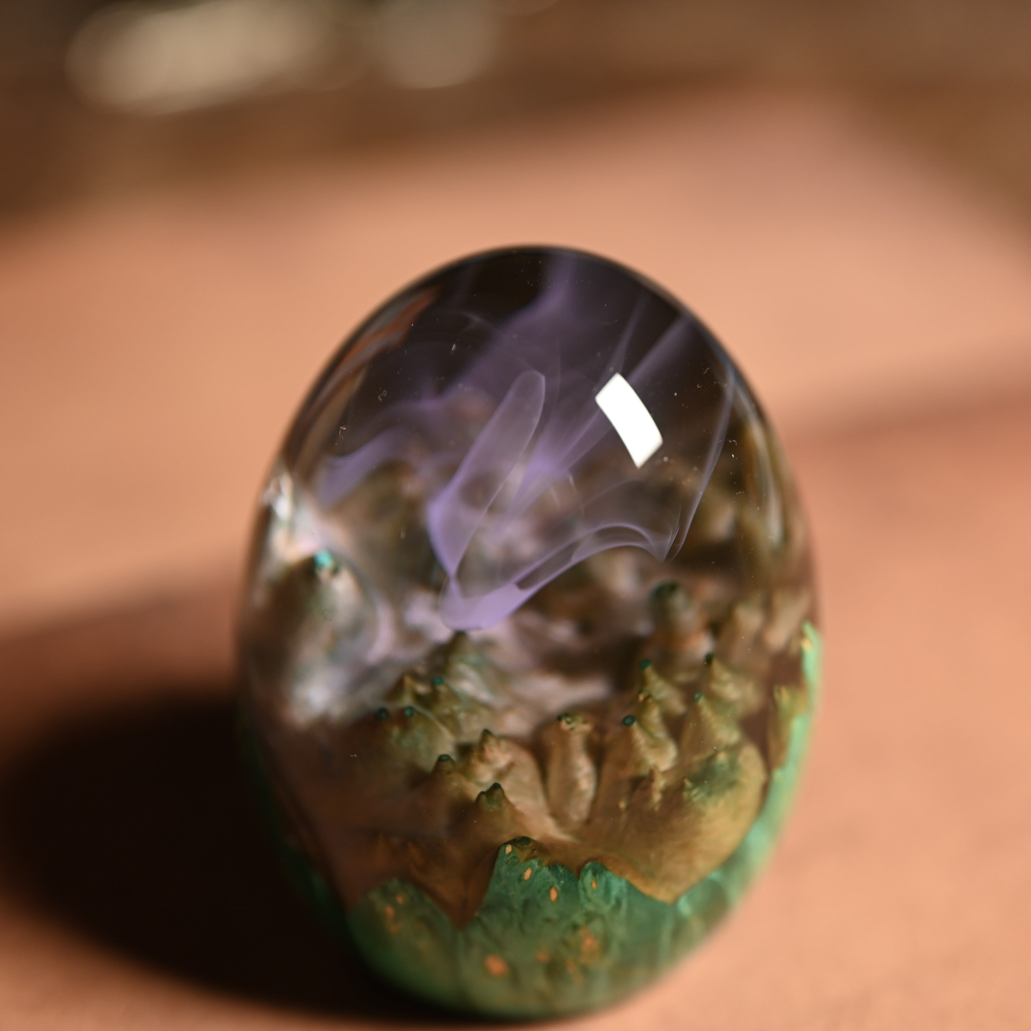 作品内部は景色をイメージし製作しており、より鮮明に魅せるためレジンの透明度と艶にこだわって仕上げました。