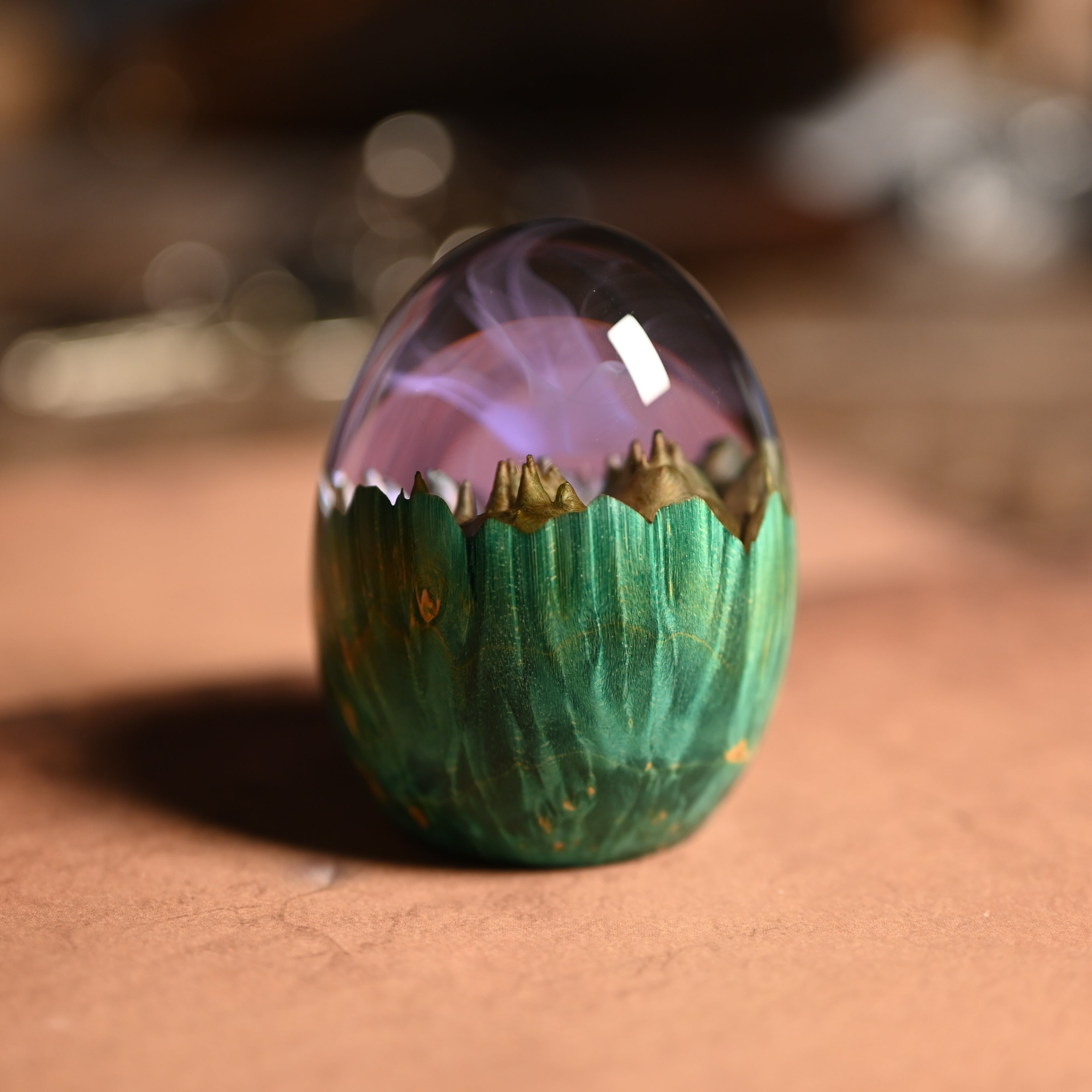 木と樹脂を組み合わせ1つ1つ手作りで仕上げた卵形オブジェ(ペーパーウェイト)になります。