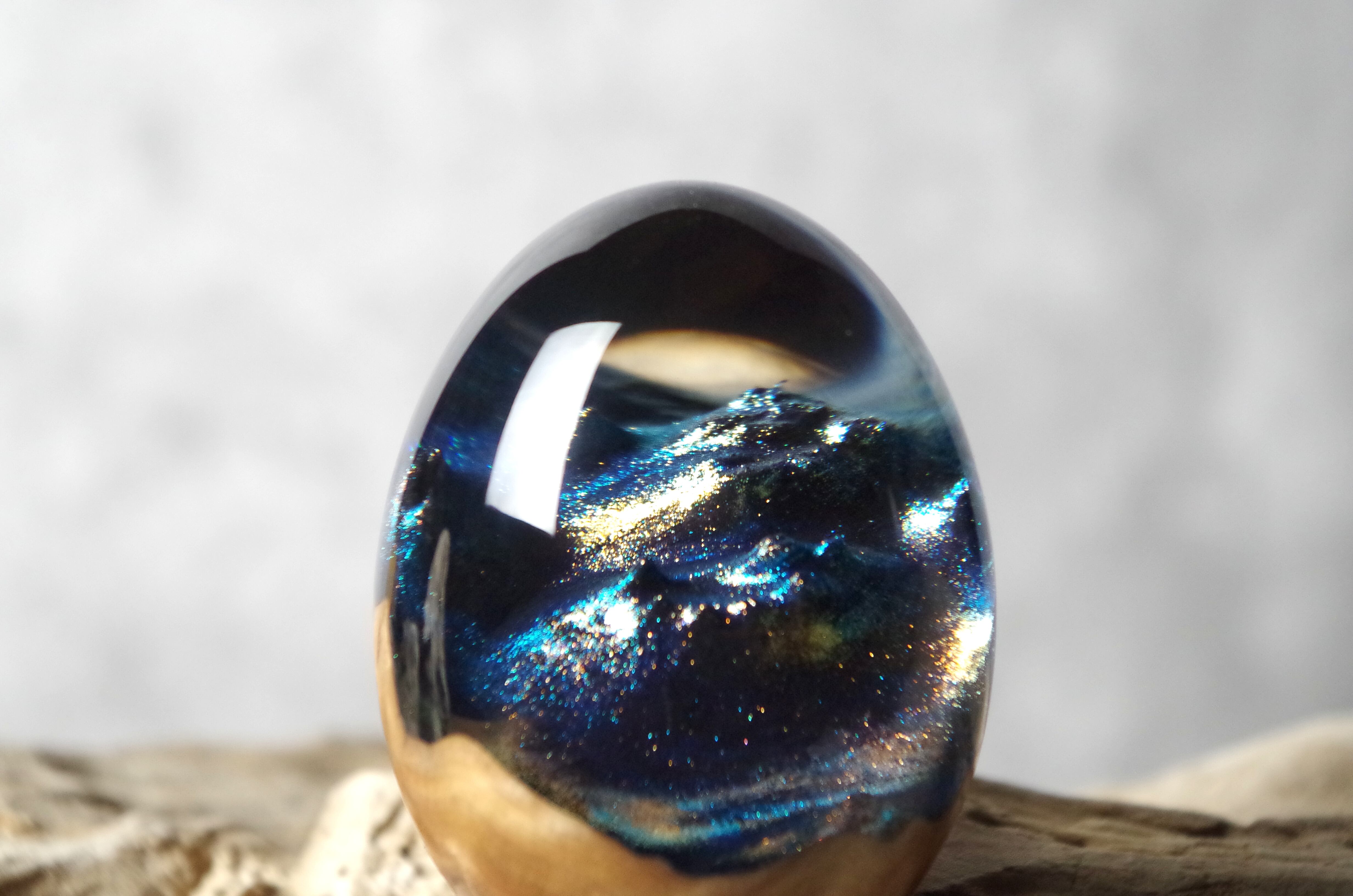 作品内部は景色をイメージし製作しており、より鮮明に魅せるためレジンの透明度と鏡面研磨にはこだわって仕上げました。