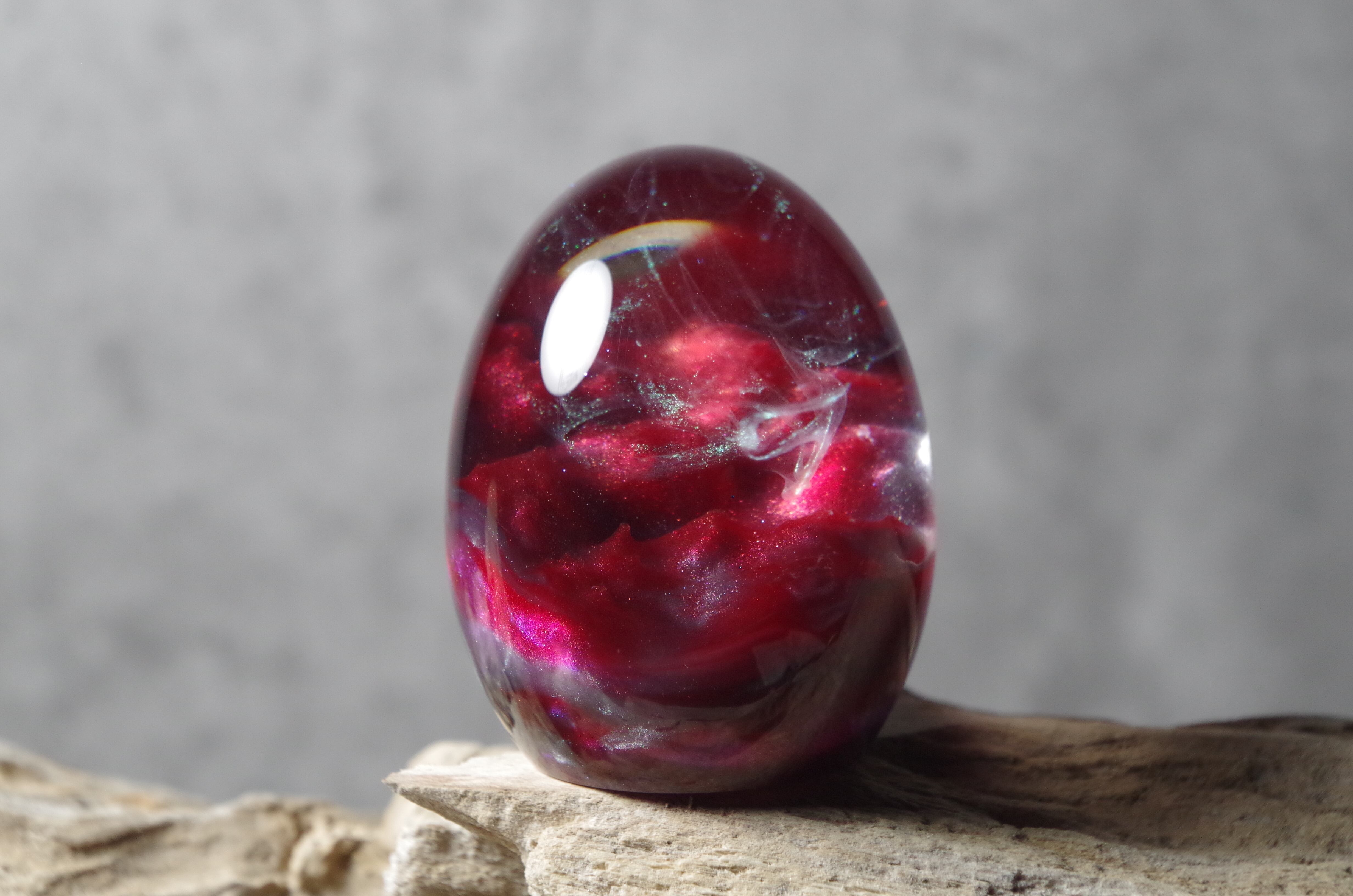 高透明、高強度の2液性のエポキシ樹脂を極限まで磨き上げた卵形オブジェ(ペーパーウェイト)になります。