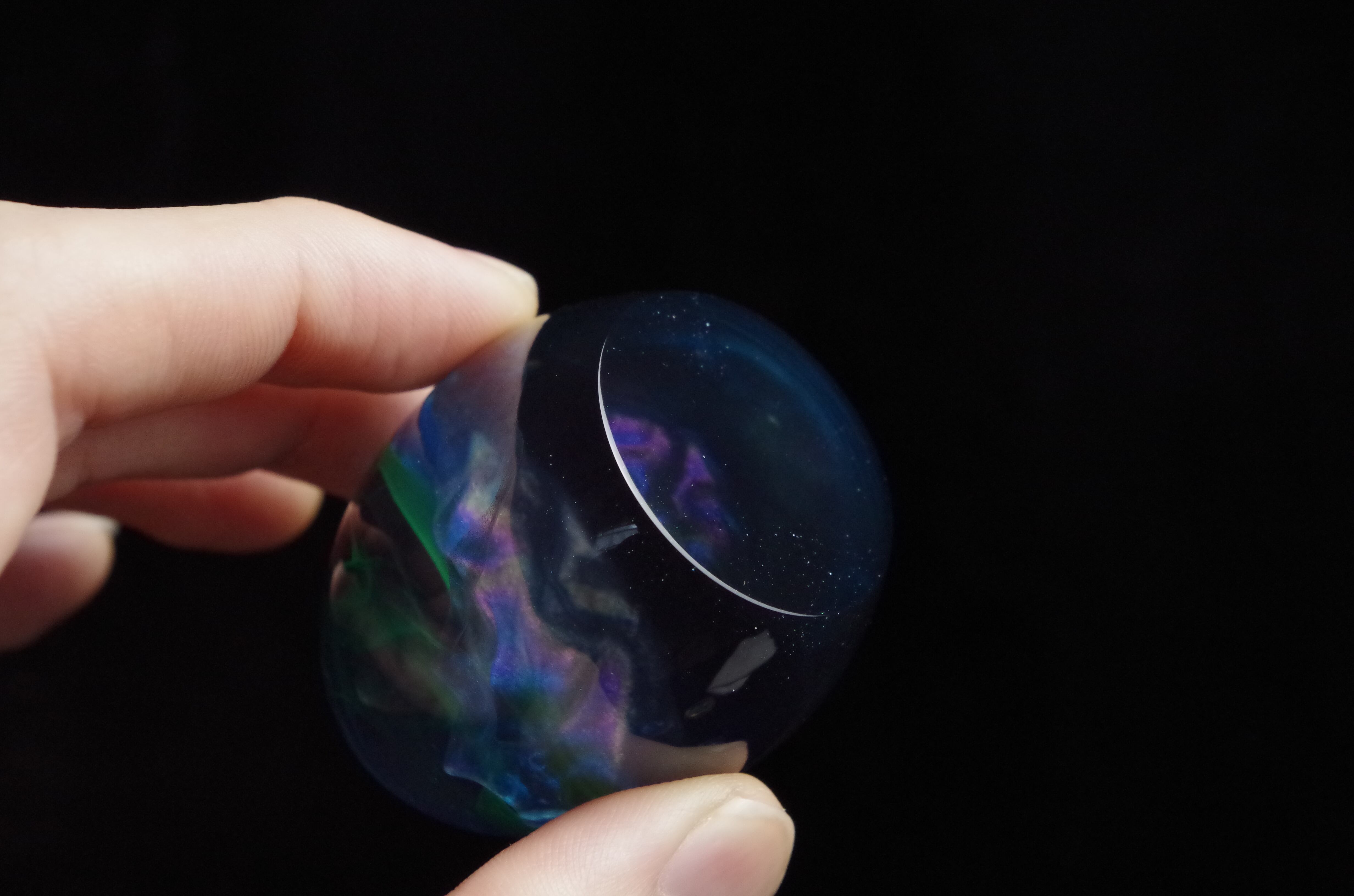 作品内部は景色をイメージし製作しており、より鮮明に魅せるためレジンの透明度と鏡面研磨にはこだわって仕上げました。