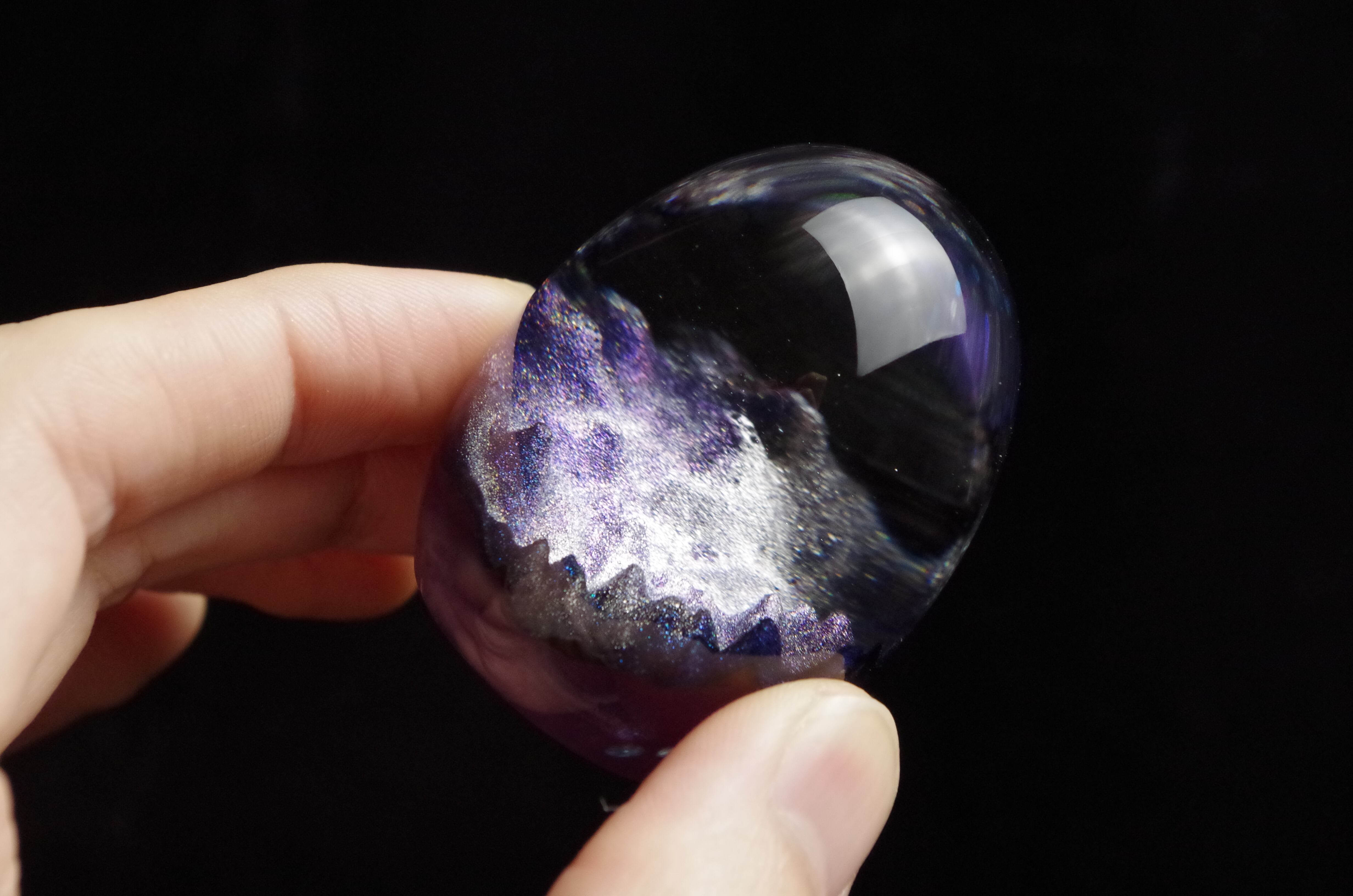 作品内部は景色をイメージし製作しており、より鮮明に魅せるためレジンの透明度と鏡面研磨にはこだわって仕上げました。